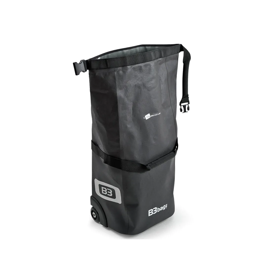 The PVC free B3 bag by B & W is bicycle bag and trolley in one. Practical wheels and a telescopic handle allow for easy transport. KLICKfix hooks allow you to easily fix the bag to the bike. Ideal for shopping, travelling or transporting heavy things.