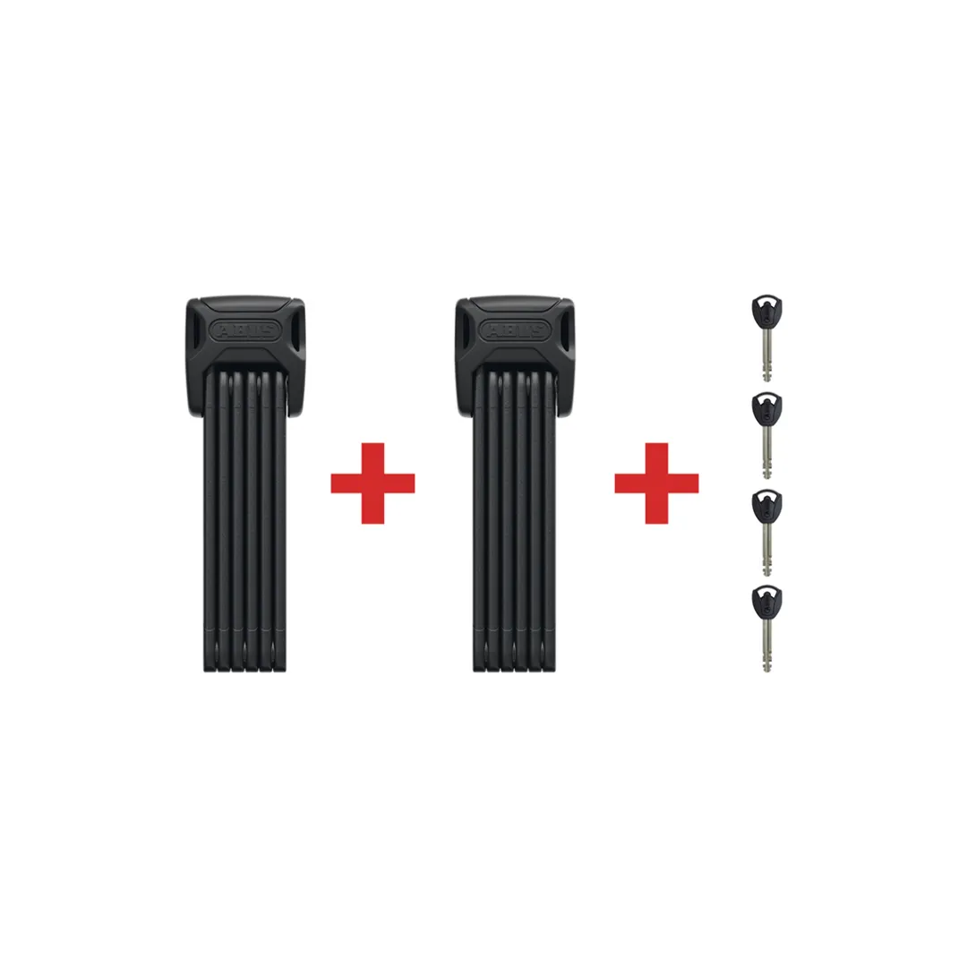 With its BORDO folding locks, ABUS has been setting the standard for years when it comes to combining security, portability and flexibility. In the Twinset variant, you therefore receive two of the ABUS BORDO 6000K locks, with keyed alike cylinders and 4 matching keys – ideal for additional family members. In addition, you can double the circumference of a lock by joining them together, while you only have to take one key with you.