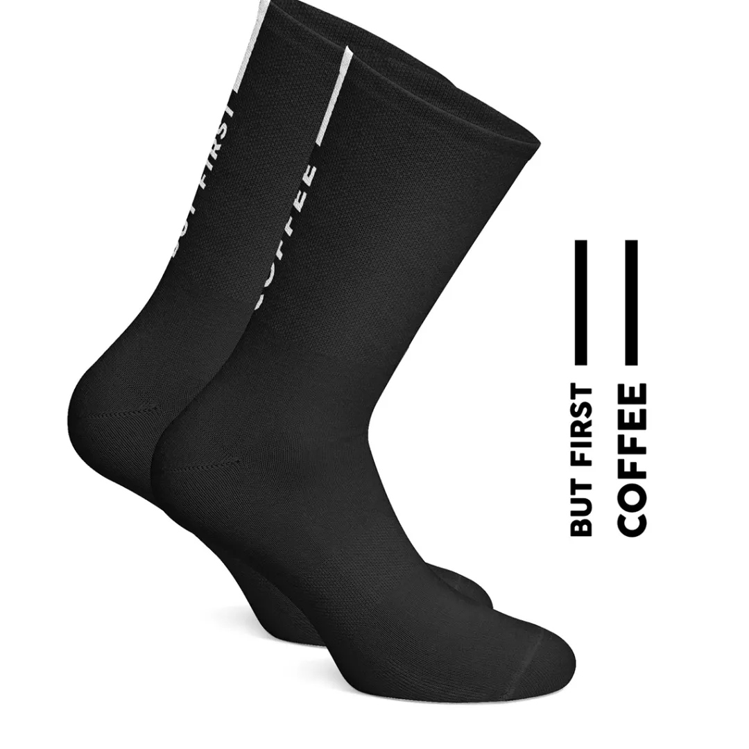 The BUT FIRST COFFEE cycling socks by ÇOIS CYCLING LEGACY are a must-have for training and racing. Thanks to their PROLEN YARN fabric, these socks stand out with excellent breathability and thermoregulation properties.