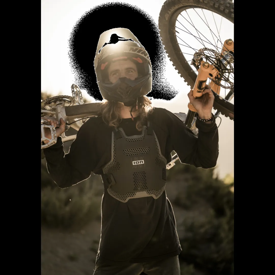 The CHEST PROTECTOR ARCON HD PRO from ION is the first of its kind and was designed in close collaboration with freeride legend Nico Vink. The centrepiece of the MTB upper body protector is the biodegradable L2 protectors on the chest and back, which were developed by REZRO and cover a particularly large area. The cleverly positioned REZRO Power Slide Caps in the front and back area provide additional impact and gliding properties in the event of a fall. At the same time, the pre-shaped protector vest offers everything you could wish for in addition to strengthening key areas of the body: optimum freedom of movement and outstanding ventilation. This upper body protector marks the beginning of the ARCON line as a sustainable product that does not compromise on performance.