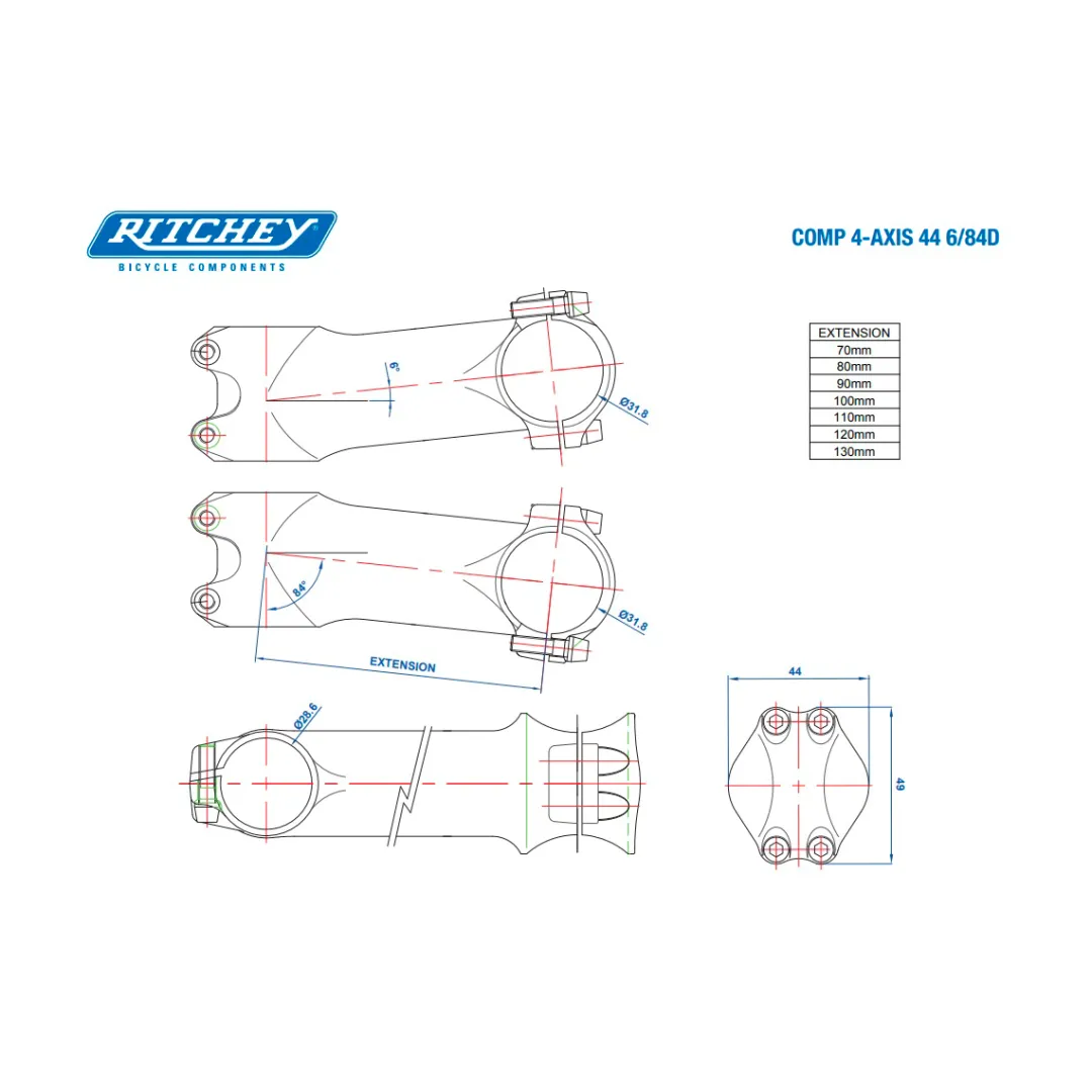 1x Ritchey Comp 4-Axis-44 Alu 84° stem