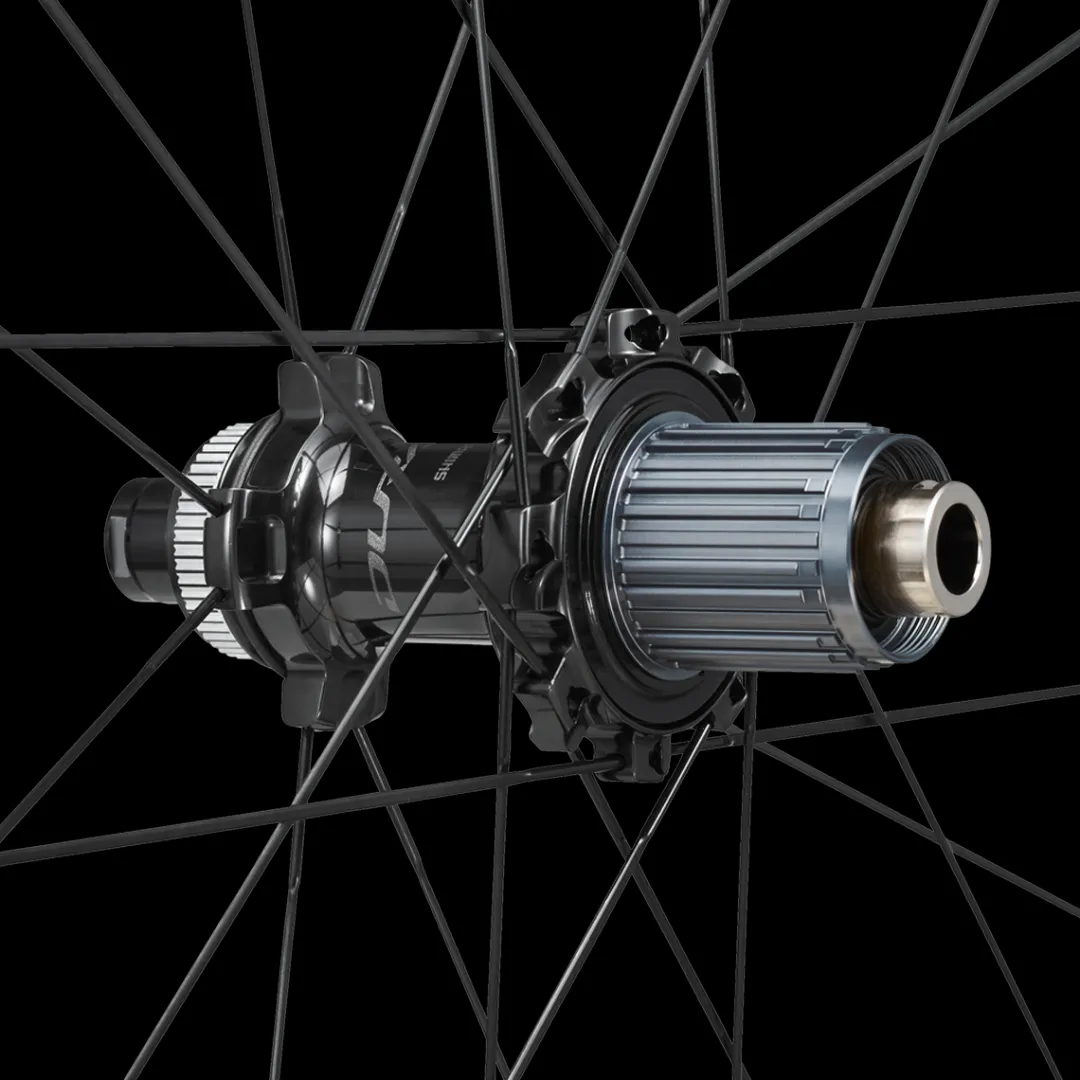 SHIMANO decided to fit the wheel with a 12-speed specific freehub. In addition, the Direct Engagement freehub system scores with up to 30% more stiffness and yet less weight compared to a standard SHIMANO pawl hub system.