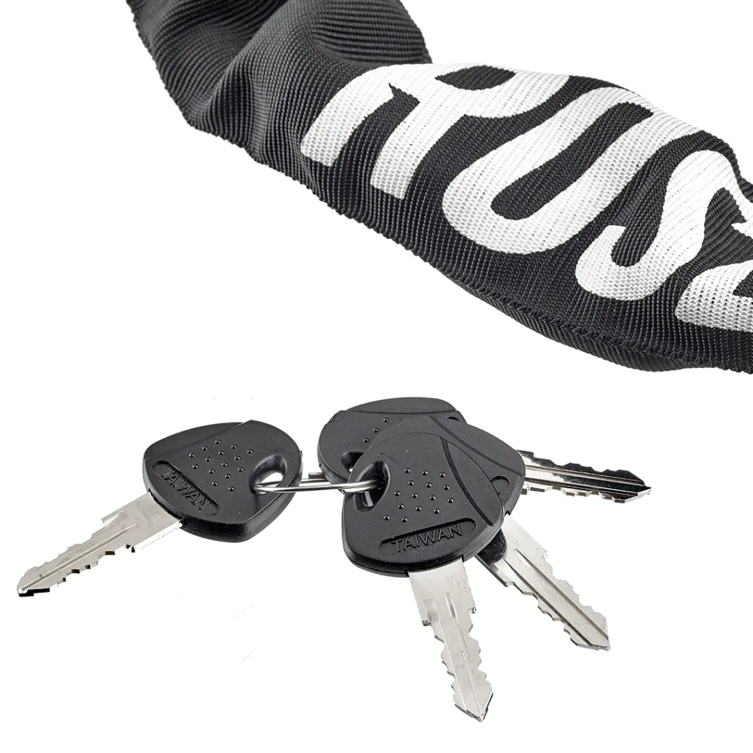 Featuring 10 mm chain links, these heavy-duty bicycle locks even withstand hard, physical attacks. In addition, they are approximately one metre long, allowing you to easily secure your bike to fixed objects. If this is not long enough for you, you can even connect the two locks with each other to get a massive 2 m chain.