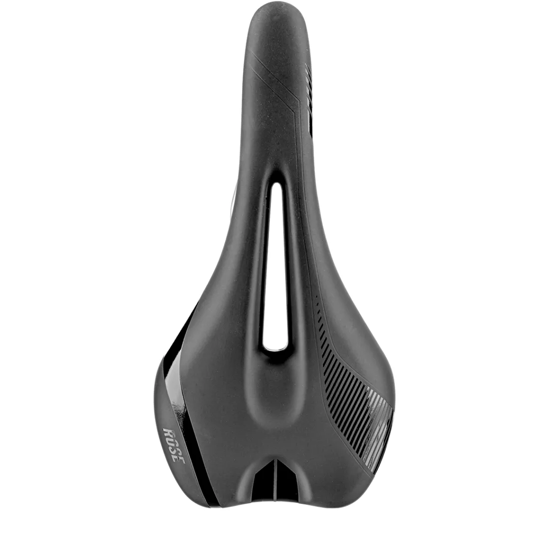 Don’t stop me now. The Race R1 MTB saddle by ROSE is a great choice for aggressive tours, training rides and races. Yet, it’s not only the hot design that makes the saddle perfectly suitable for cross-country, enduro and downhill riding. Sitting on the flat, slightly convex saddle immediately gets you in the speed mode. Also perfect for road cycling.