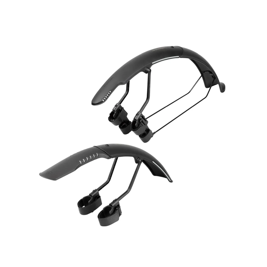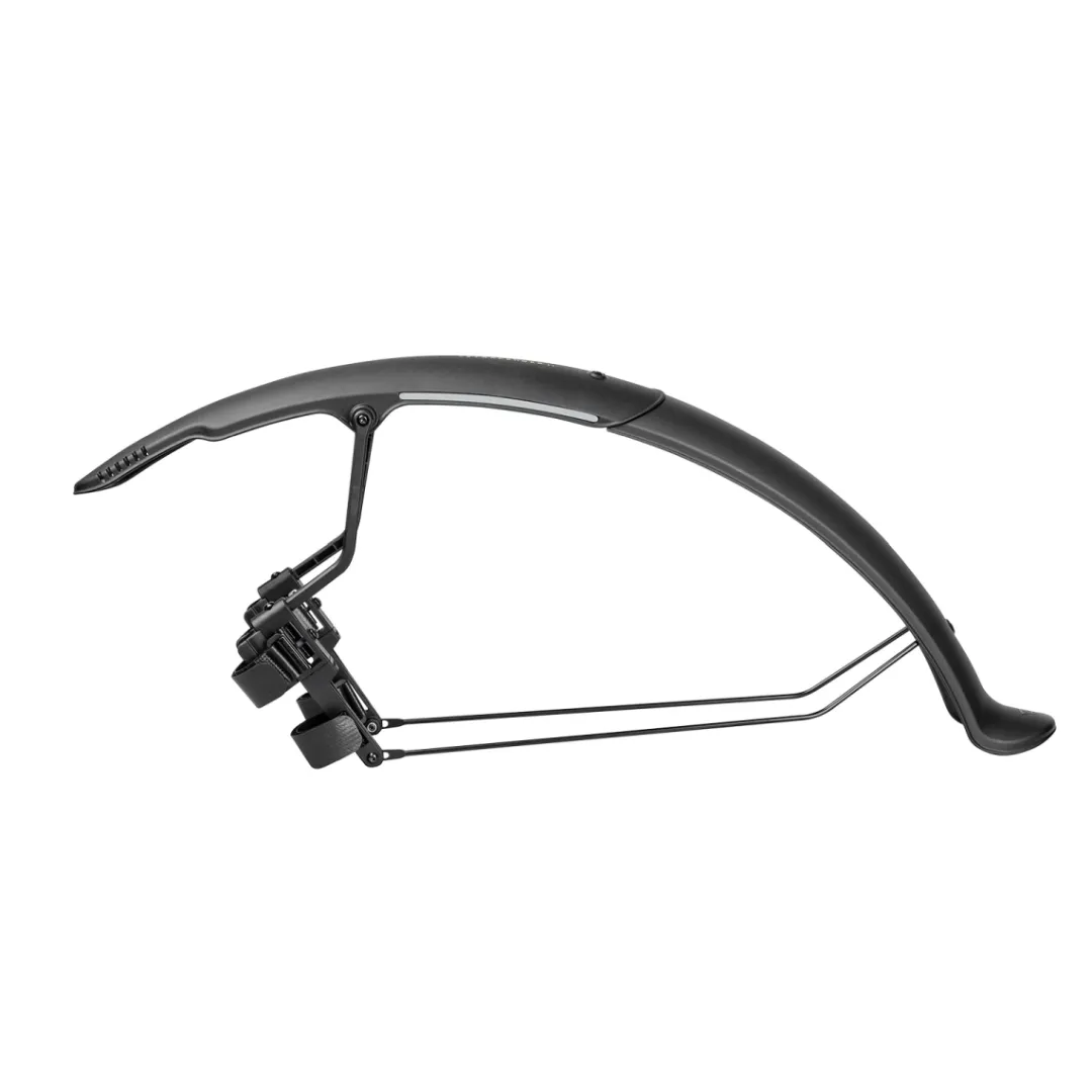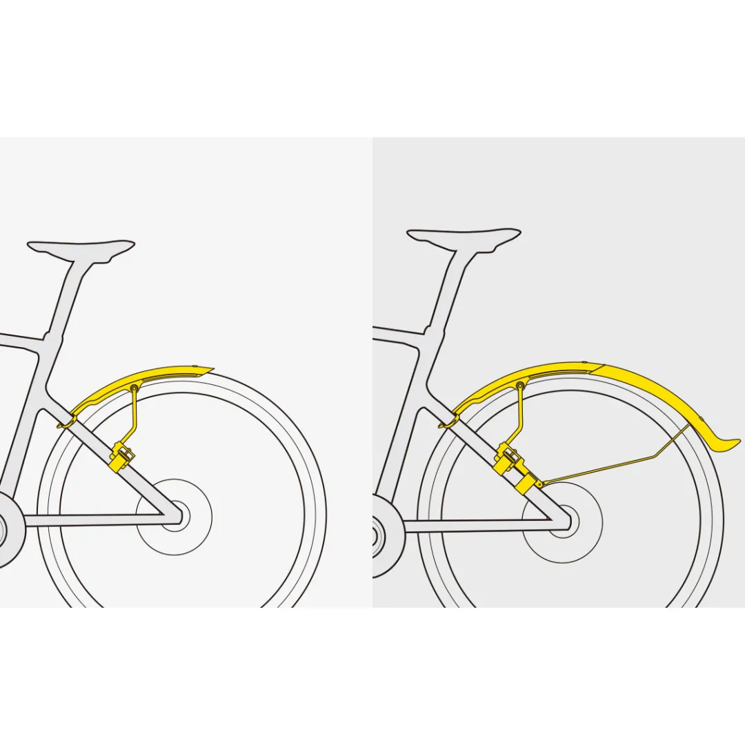 Adjustable aluminium stays provide optimal tyre coverage on both front and rear wheels and excellent protection. The two-piece, dual-tone design of the rear fender offers a short and a long fender option for customisation.