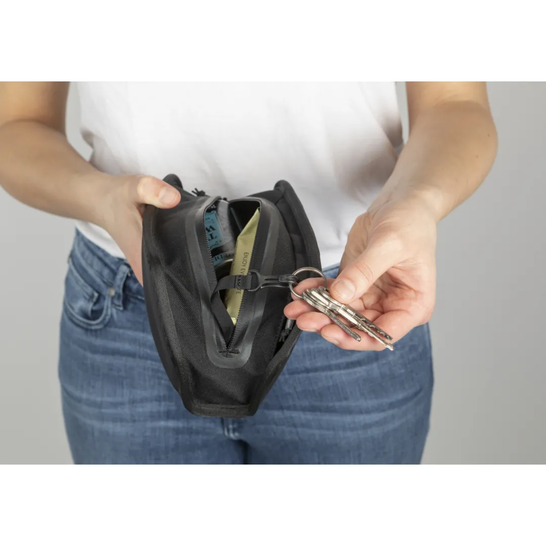 The TWIST essential bag by Fidlock can be your practical companion on city tours, the commute to work or a leisurely bike ride in the countryside. Depending on the version, the compact frame bag can hold all the useful little things you need in everyday life: keys, wallet, mobile phone or repair kit, all the way to small snacks and a light rain jacket for unexpected showers. Compartments on the inside and outside as well as clever detail solutions such as the water-repellent welded zip and a key hook will help you to organise the contents safely, tidily and within easy reach.