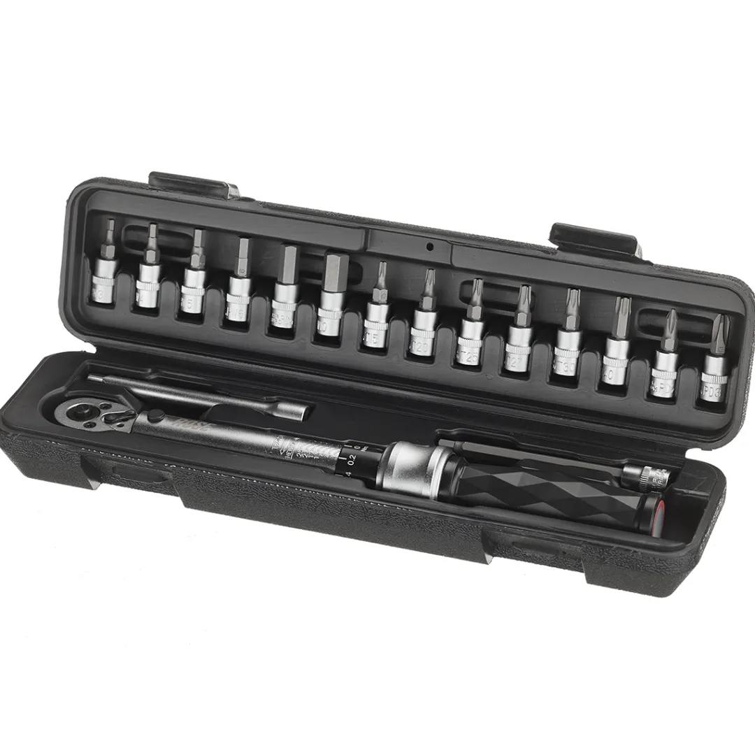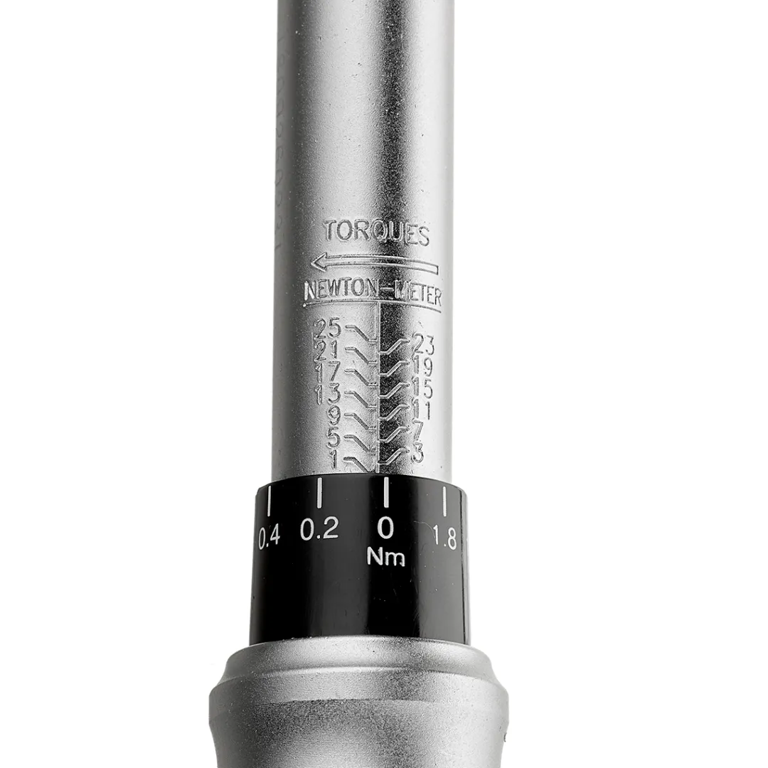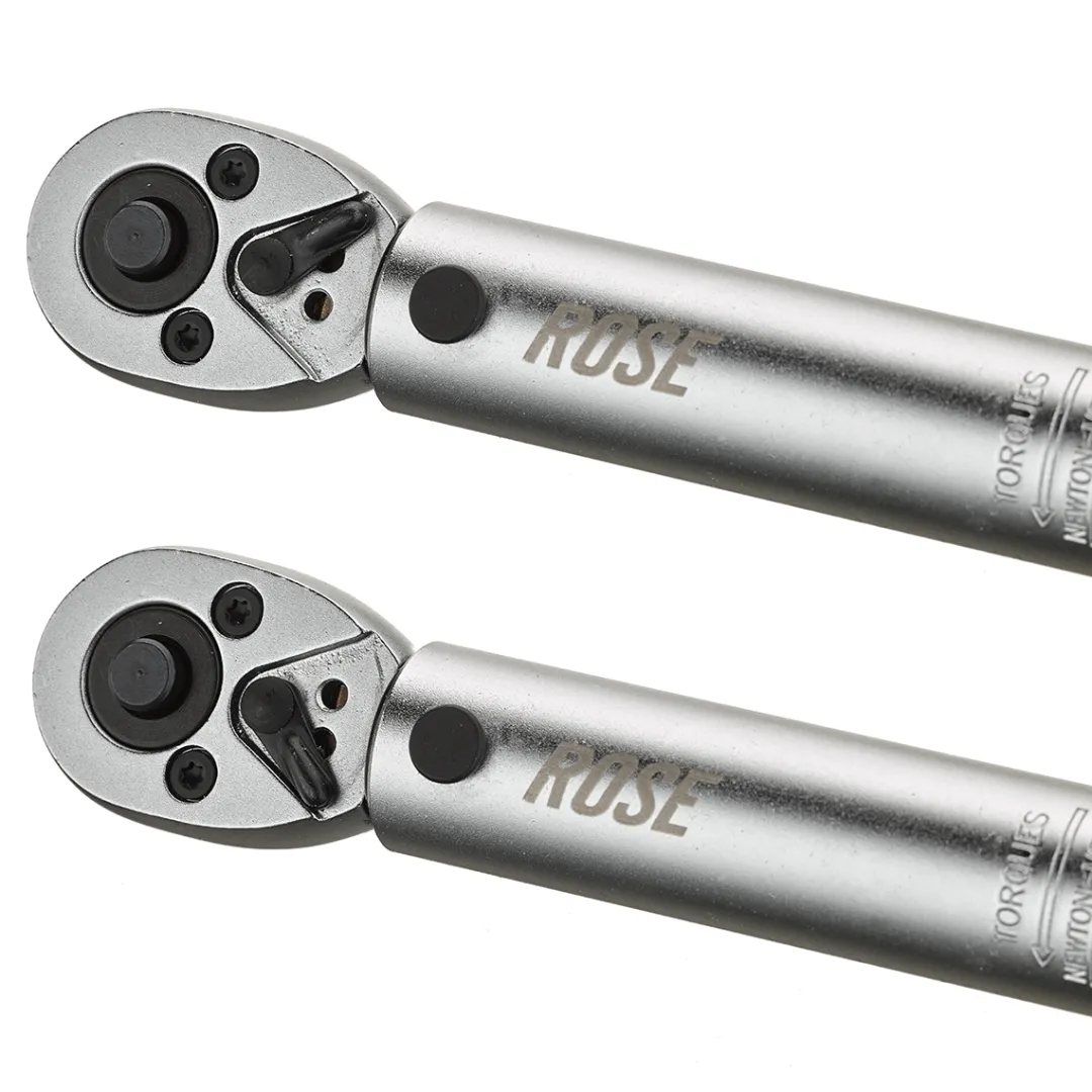 The ROSE 1-25 NM PRO torque wrench is definitely a good choice for any bicycle workshop. It helps you tighten components such as stems, handlebars, seatposts etc. to the required torque and is thus perfectly suitable to fasten sensitive carbon components without damaging them. With an adjustment range of 1-25 Nm, the high-quality precision tool covers a wide range of torque values, which makes it perfect for most maintenance works on your bicycle. The torque is set and locked with a metal collar, which eliminates unintended adjustments.