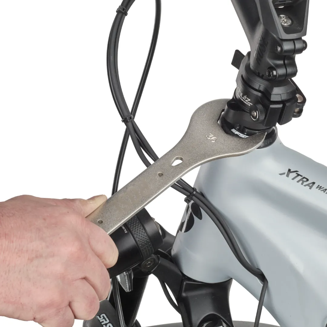 Very robust headset wrench made of high-grade tool steel with 32mm and 36mm wrench opening (please note that you need two wrenches for tightening a threaded headset).
