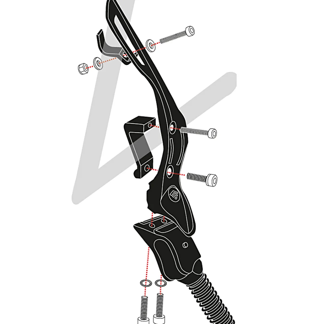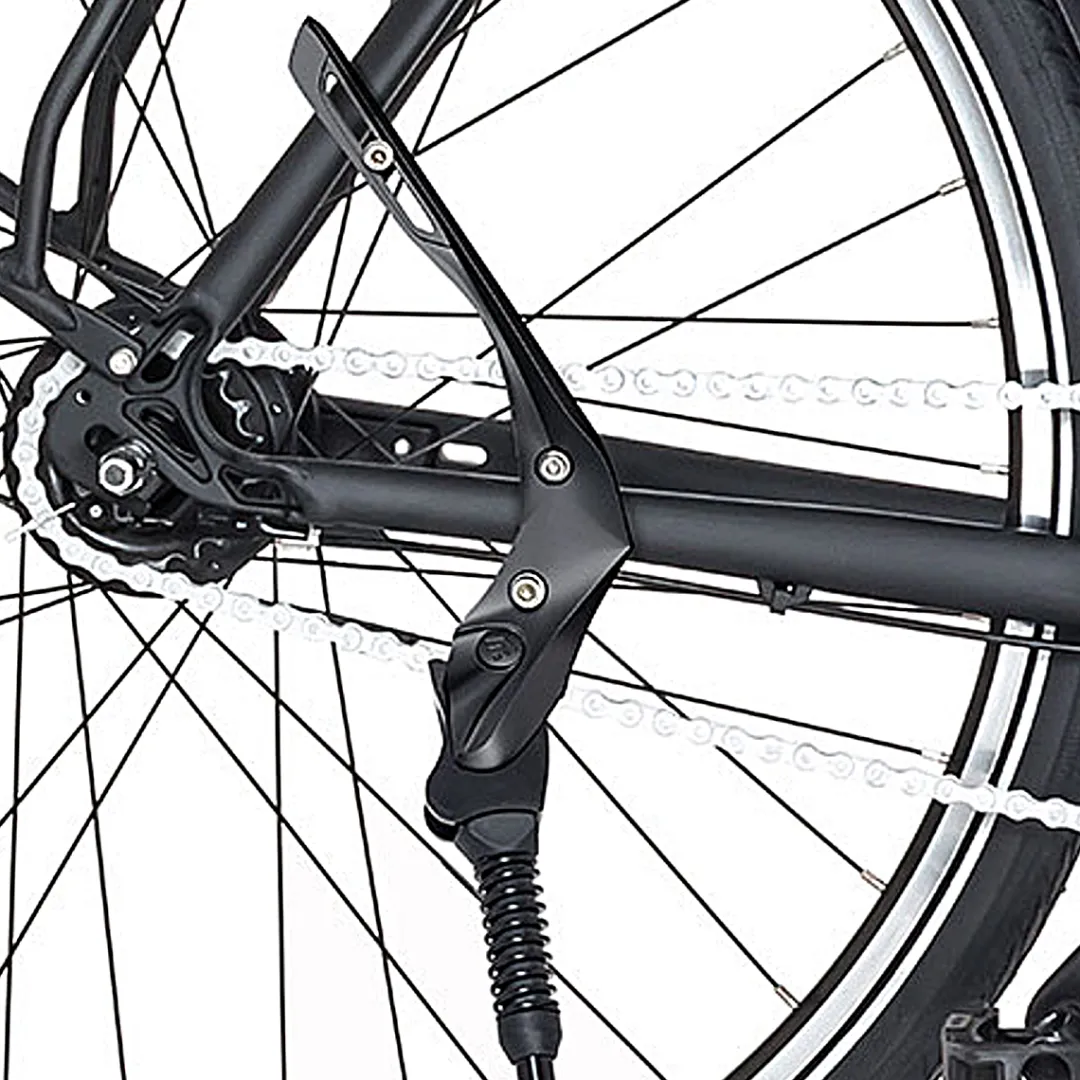Attaching to both sides of the frame triangle, the 673 E Set Fox uni rear mount kickstand makes sure bikes without threaded eyelets to mount a kickstand will stand on the ground safely. The robust kickstand for left and right-side mounting fits many frame shapes – especially mountain bikes – which makes it suitable for versatile use. Bicycles with disc brake, too, offer enough space to fit the kickstand.