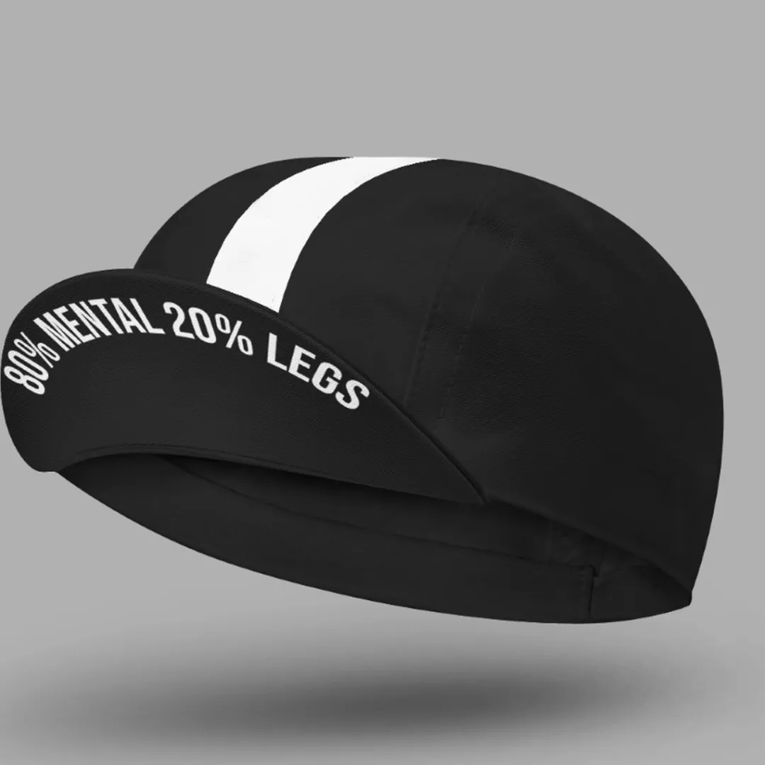 Cycling caps are as popular as ever and an important part of a cycling outfit. The 80% Mental 20% Legs not only adds the finishing touch to your cycling outfit, but also gives it a casual vintage or retro feel. When the sun is shining, the visor of the cap ensures that your eyes are less affected by the sun during the bike ride. In addition, it absorbs sweat when you push yourself to your limits and keep telling yourself that success is 80 per cent mental power and 20 per cent leg power – pull on through!