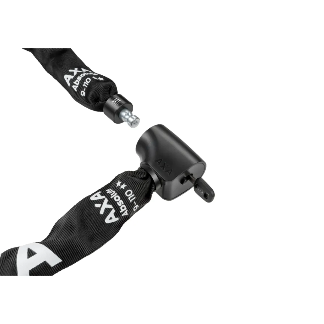 The AXA Absolute 9-110 chain lock is 110 cm long, so you can comfortably attach it to bike stands, railings, or street signs. There is no need to worry about damage to the paint – thanks to the strong polyester cover, you can also be in a rush when attaching the lock.