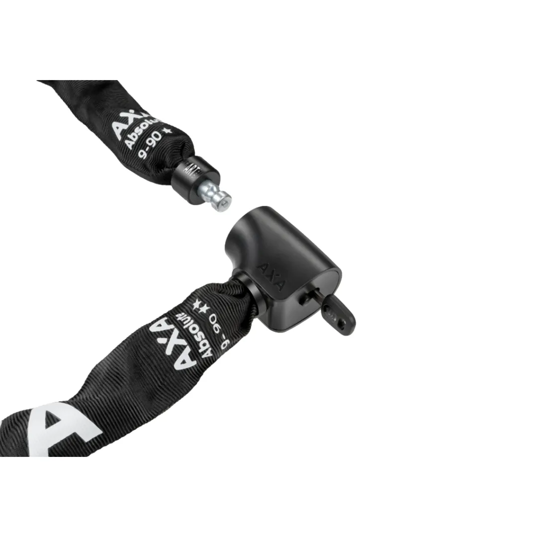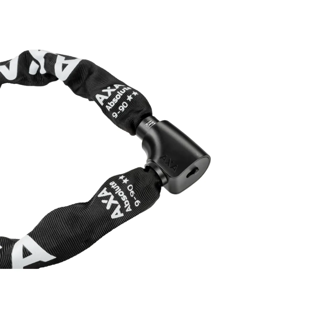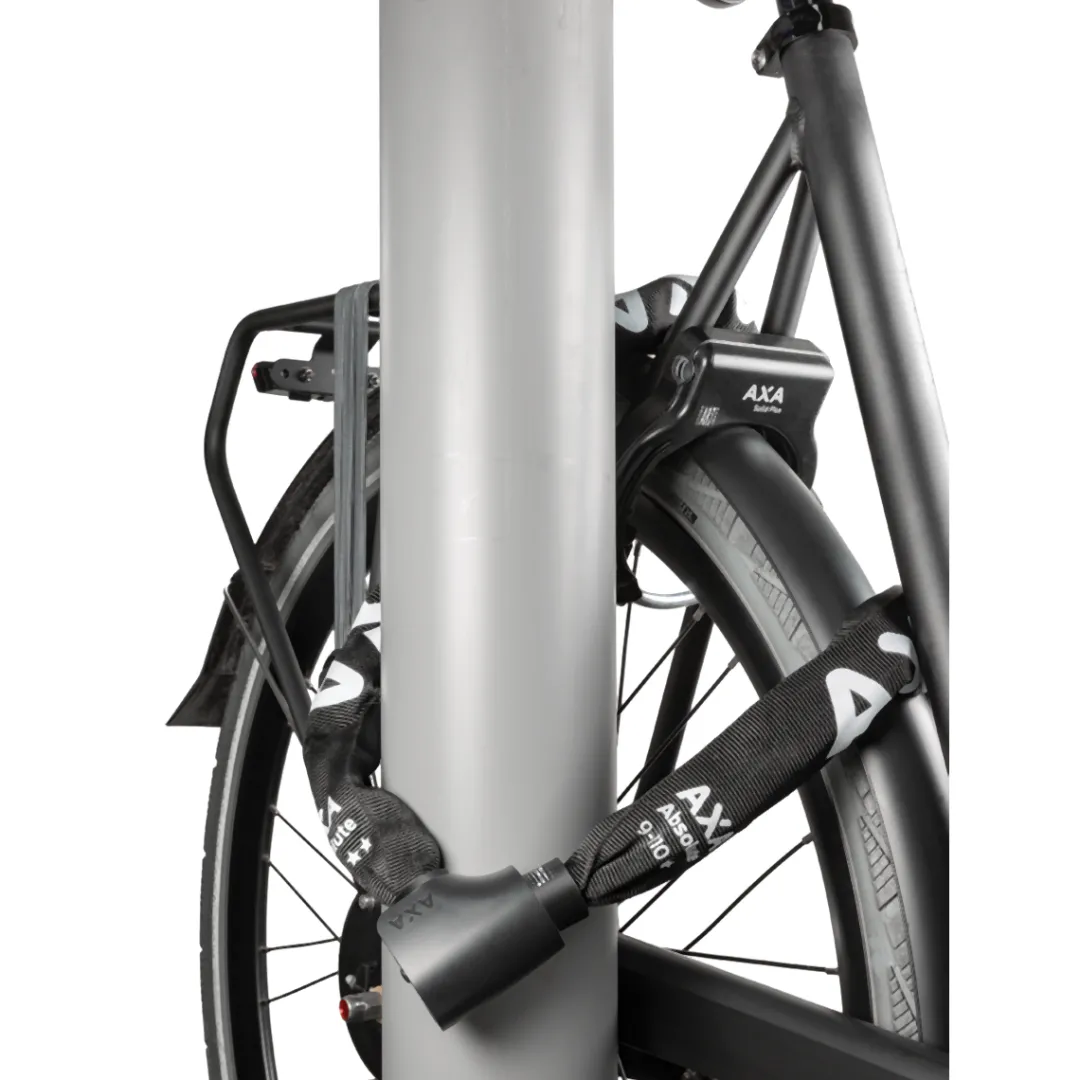 The AXA Absolute 9-90 chain lock is 90 cm long, so you can comfortably attach it to bike stands, railings, or street signs. There is no need to worry about damage to the paint – thanks to the strong polyester cover, you can also be in a rush when attaching the lock.