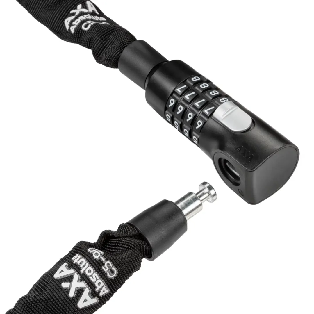 The small Absolute C5-90, has proven to be especially lightweight and compact, making it ideal for short to middle-length stops or as a second lock. The locking mechanism is a practical combination lock with a number combo that you can choose yourself. This way you can always have your personal code with you and do not another addition to your keychain. You do not even need to put in your number combination to lock it. The click-In function ensures that your chain can easily snap into the locking mechanism.