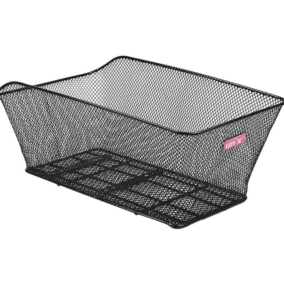 Fine-meshed bike basket for permanent installation on the luggage rack. With a large volume and lengthwise construction. Bike basket including fastening elements.