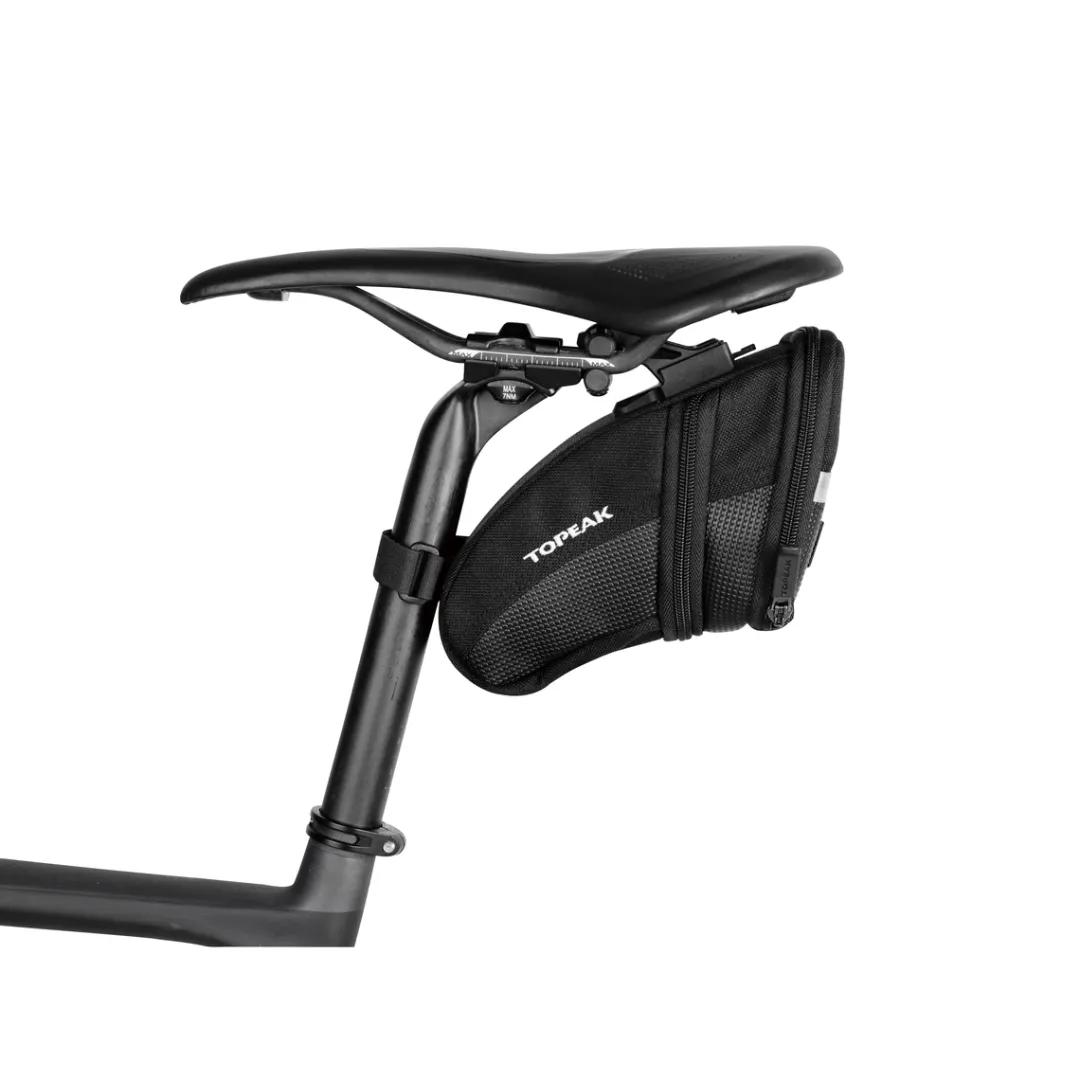 The AERO WEDGE PACK MEDIUM saddle bag by TOPEAK offers enough volume to stow away everything you need – whether it’s an energy bar, a spare tube or a multi-tool.