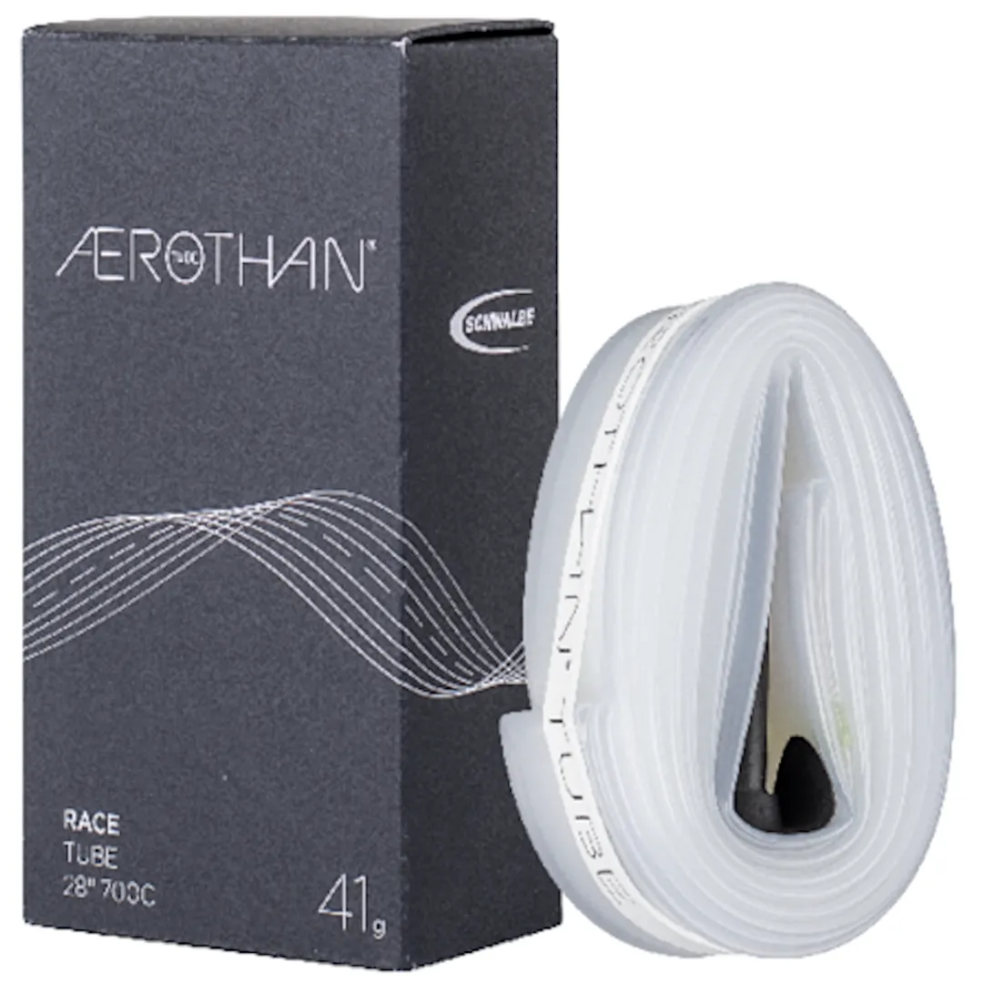 Consistently light right down to the valve – The AEROTHAN Race inner tube by Schwalbe is around 40 percent lighter than a comparable Schwalbe Extralight inner tube made of butyl. Those who do not ride tubeless with their narrow road bike tyres will benefit from this robust tube made of thermoplastic polyurethane through noticeable advantages in weight and rolling behaviour. Compared to butyl tubes, a weight saving of 100 grams and more can be achieved on your road, triathlon or time trial bike.