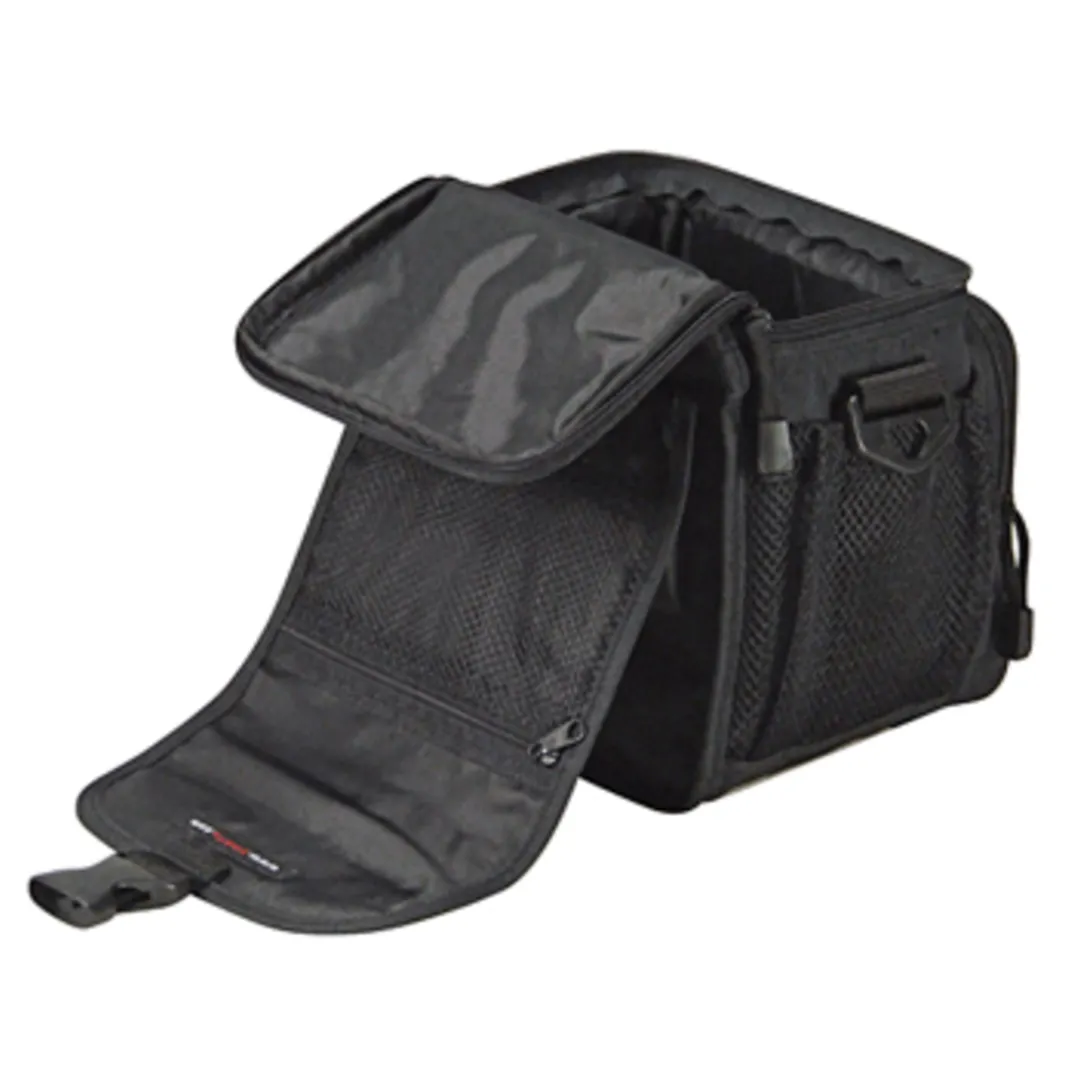 Thanks to its compact, narrow shape, the KLICKfix ALLROUNDER MINI handlebar bag by Rixen & Kaul can also be used for strongly curved handlebars. It has a front and top pocket, removable shoulder strap, mesh pocket on one side and a phone pocket on the other. Alternatively, the bag is also well-suited for use with the Extender (prod. code: 374910) at the seat post