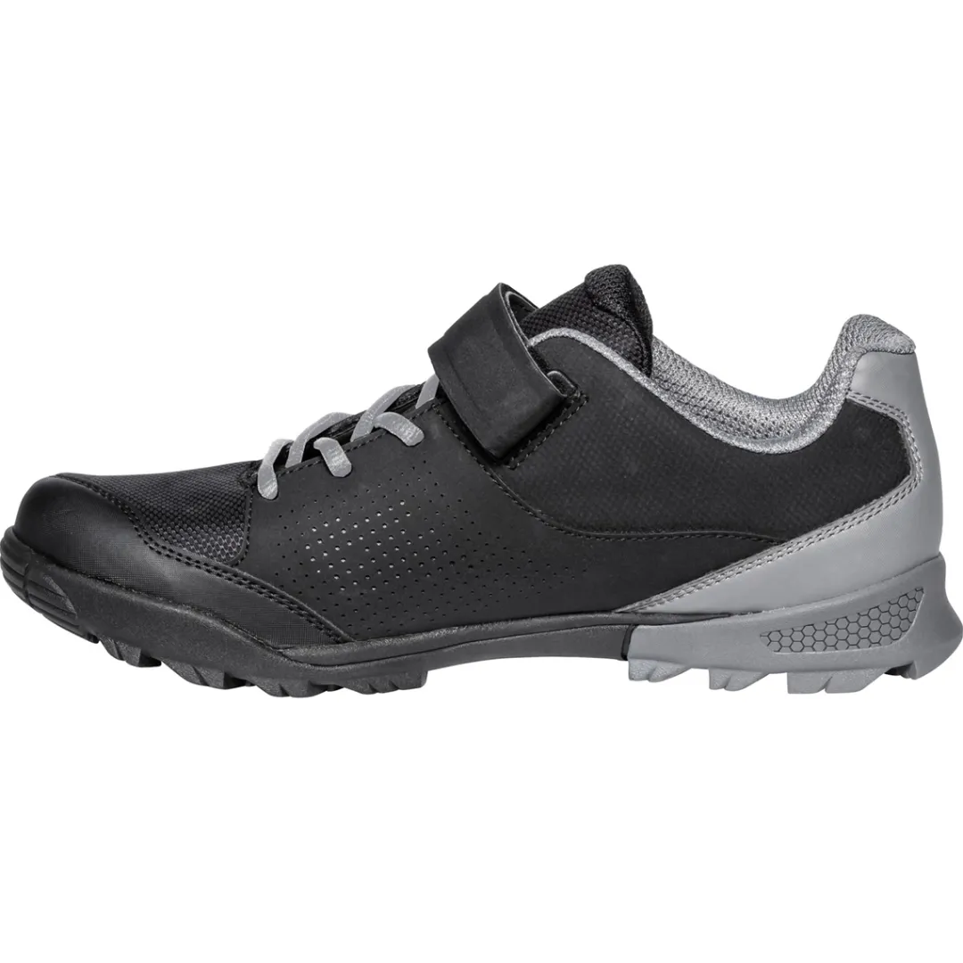 The dynamic tread pattern provides a larger contact area and good abrasion resistance. The bolt-on cover of the cleat system allows you to either ride with or without cleats. A nylon reinforcement ensures best power transfer to the pedal. The sole is convex for easy walking. Besides, it offers high shock absorption on midfoot and instep.
