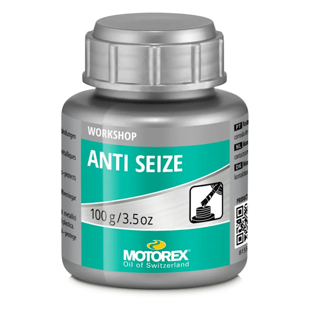 The water-resistant paste effectively protects against contact corrosion and prevents cold welding, so-called ”seizing”. Aluminium components mounted with steel screws and titanium surfaces should be treated with Motorex Anti Seize.