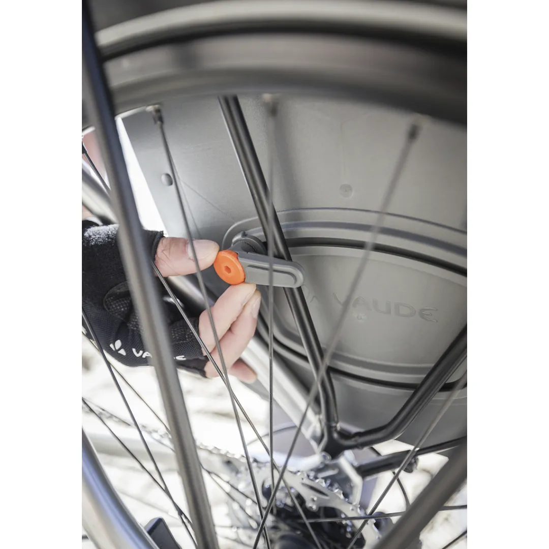 The second generation of the QUICK MOUNT RELEASE hook: even easier to use and can be directly locked onto the hook (with ABUS 145/20 padlock, product code: 2269013). Thanks to included adapters, the QMR hooks fit a wide range of different tube diameters (8-16 mm). Simply choose the appropriate adapter for your rack, fit it into the QRM hook of the bag, adjust the hook’s position with the horizontal dial if need be and hook the bag on the rear rack with just one click. An additional hook on an elliptical ring allows for individual adjustments to the vertical line of the luggage rack.