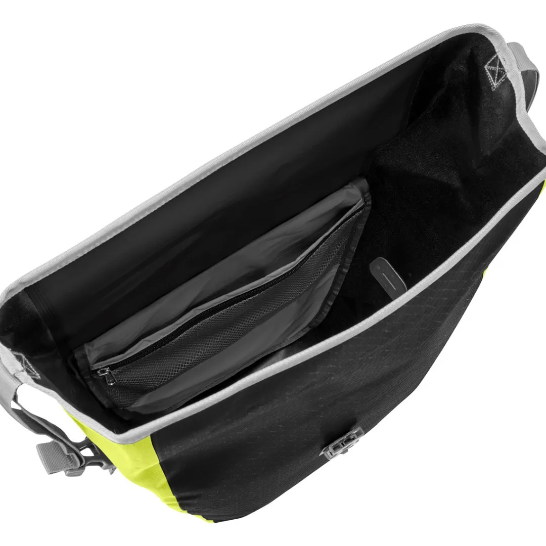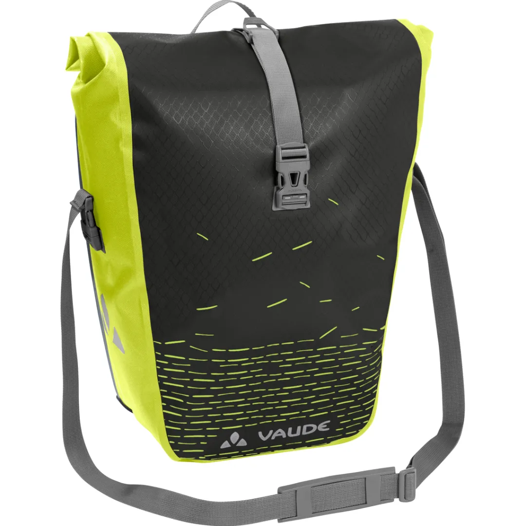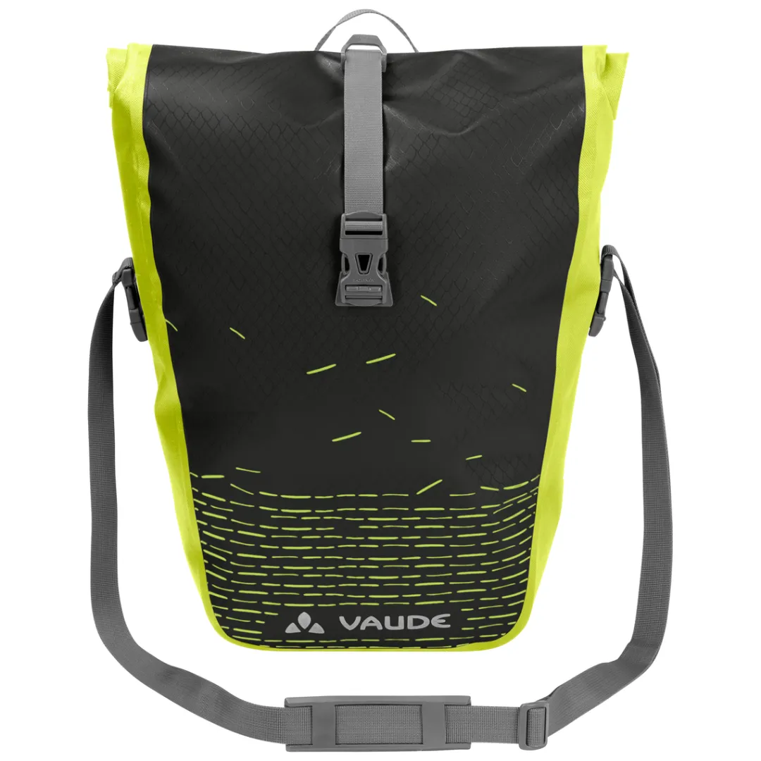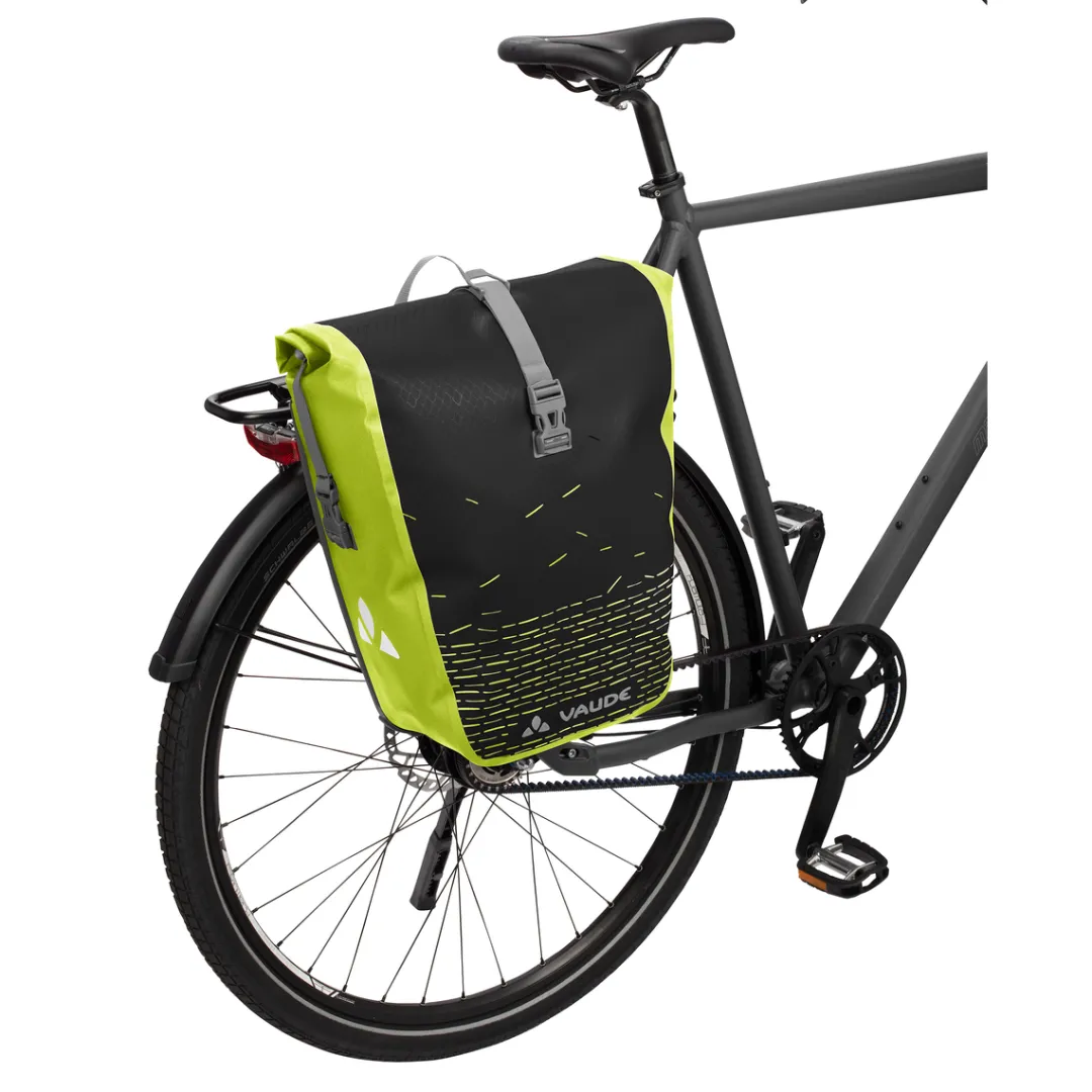 The Aqua Back Print Single pannier by VAUDE comes with a fashionable print. The truck tarpaulin material is waterproof and thanks to the wrap-around closure this bag lets rain and spray water simply roll off. The QMR 2.0 fastening system allows flexible and quick mounting on the luggage carrier.