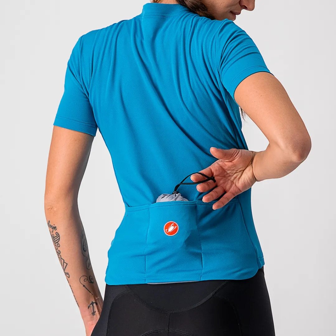 The ARIA SHELL W JACKET by Castelli offers lightweight protection from cold headwinds. The highly packable windbreaker jacket for women is quickly at hand when riding down a hill. Perfect as emergency vest.