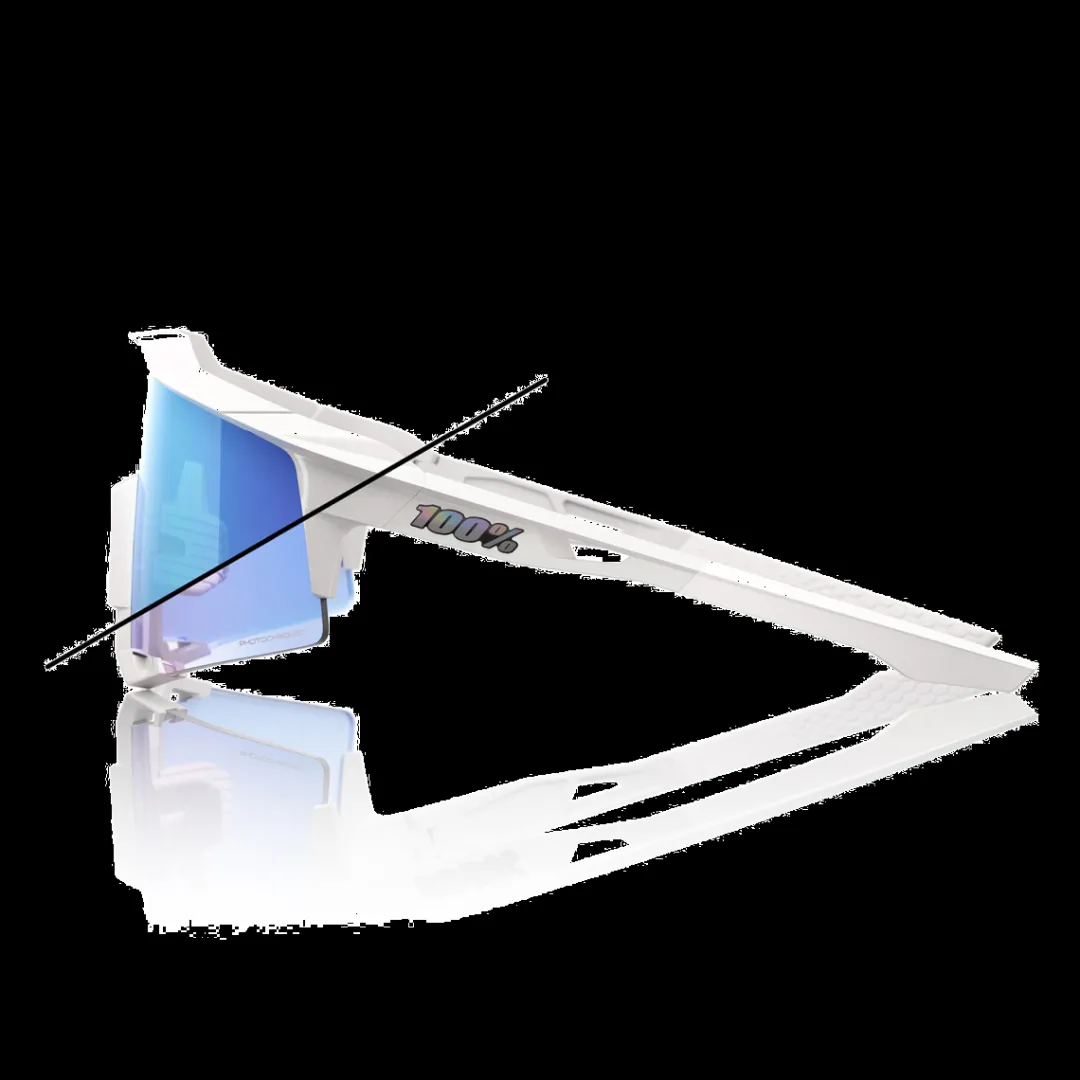 The collection is characterised by a pearl white frame, which is accentuated by chrome-coloured, iridescent logos. The design is topped off by the blue mirror photochromic lens, which provides excellent vision.