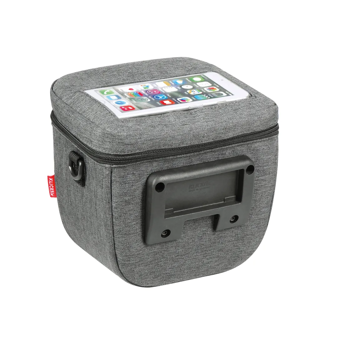 The KLICKfix Aventour Compact City handlebar bag by Rixen & Kaul with its transparent compartment in the lid offers you an optimal overview and practical navigation via smartphone on your tour. Just push the phone into the pocket from the inside, so that it stays protected from the weather.