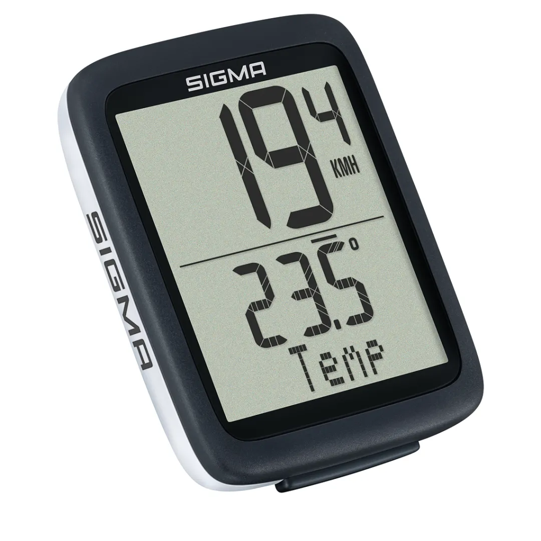 The Sigma BC 10.0 WL bike computer from the Sigma Originals series offers ten important functions in a small device – and completely wireless thanks to analogue ATS radio technology. In addition to the basic functions such as speed, distance and cycling time, it also provides values for average speed and maximum speed as well as a helpful temperature display.