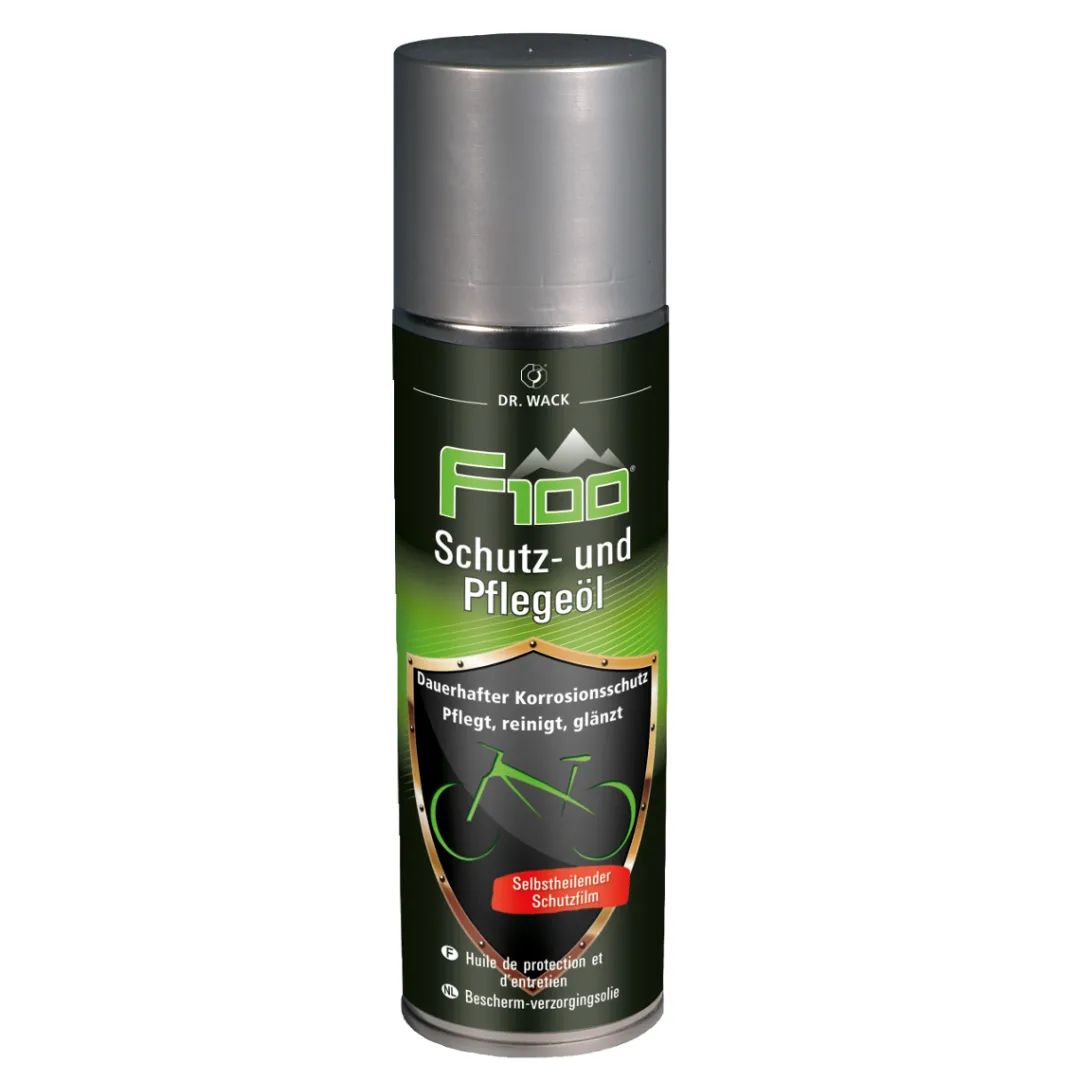 The F100 bicycle protection and care oil forms a transparent protective film against harmful environmental influences, which closes again immediately after contact. Excellent corrosion protection, stops existing corrosion. Highly penetrating, reaches even hard-to-reach places. Suitable for paint, rubber and plastic parts.
