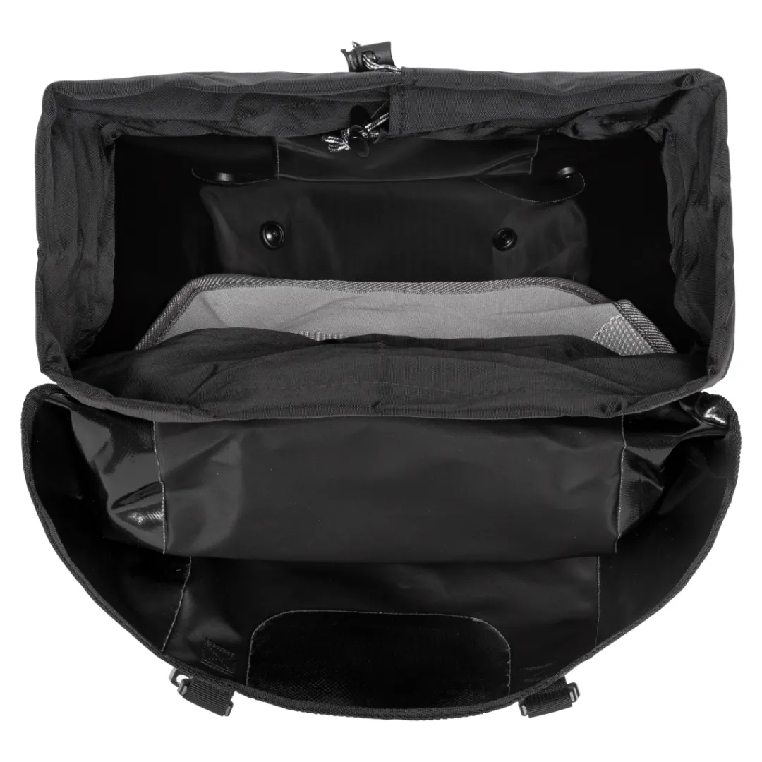 Practical base feet support the bag’s stand off the bike. The lid closure allows for quick access to the inside of the waterproof rear pannier. In addition, a drawstring dust flap provides extra protection from dust, moisture and snow. A permanently installed inner pocket, consisting of a main compartment and a mesh pocket, ensures a tidy inside of the bag.
