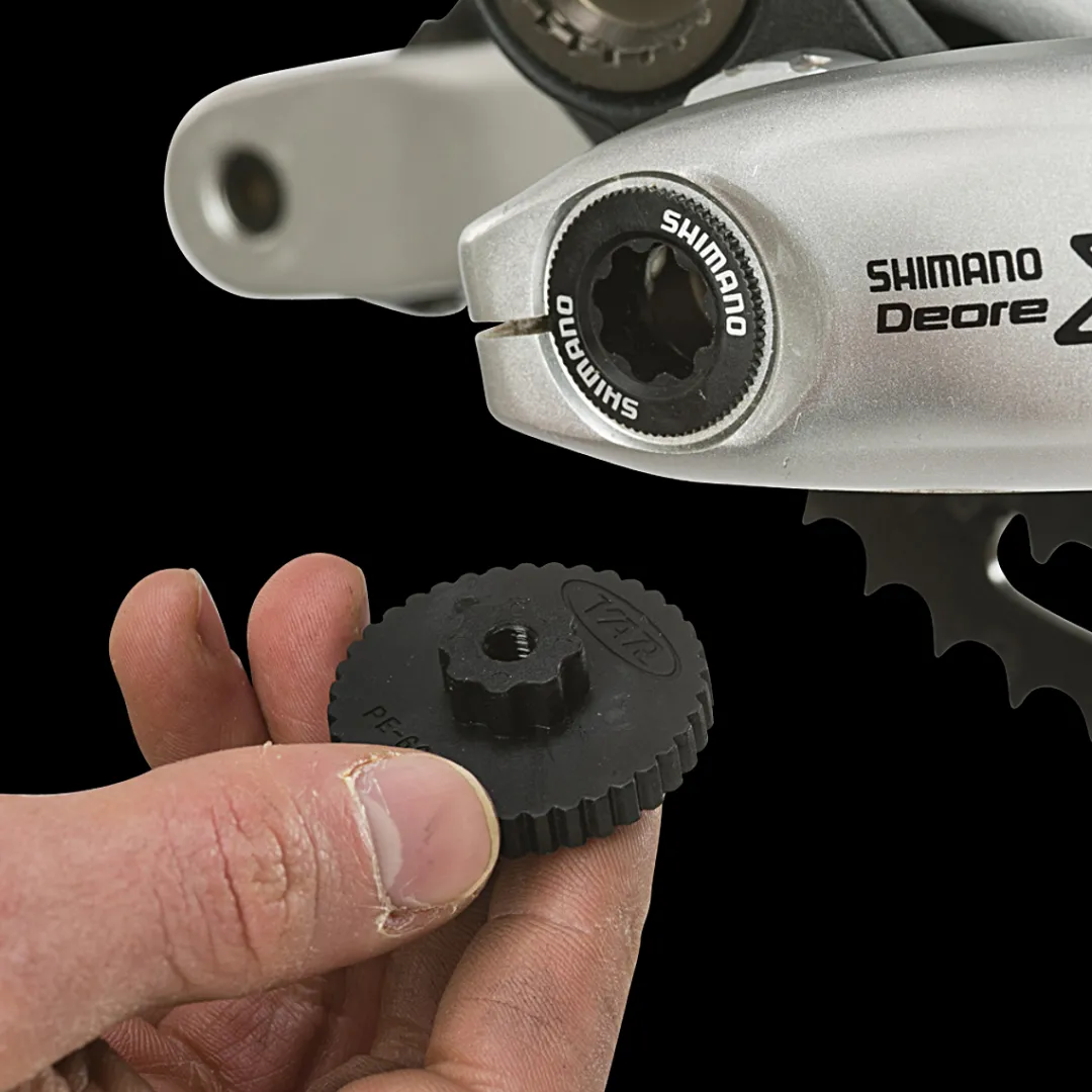 The BP-62100-C bottom bracket tool by VAR provides tremendous leverage during the installation and removal of pedal cranks or bottom brackets. Thus, the BB tool in workshop quality even helps you remove seized bottom bracket cups. Its rubber-coated handle offers high grip and excellent power transfer for easy handling. The integrated crank cap tool allows you to easily remove the adjustment cap with star-shaped fitting.