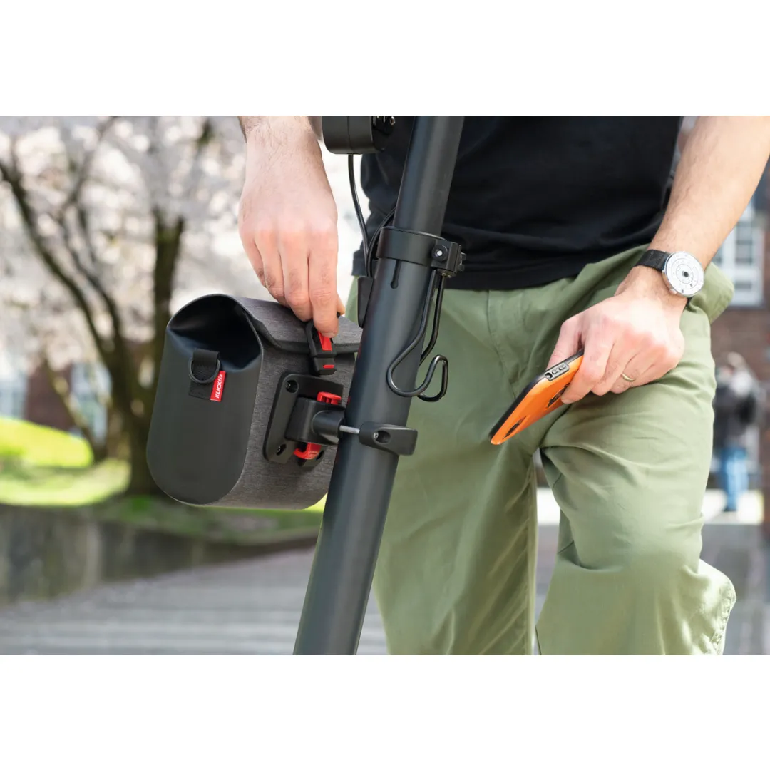 With the Caddy Oversize handlebar mount by KLICKfix, you can easily attach a basket or bag to vertical tubes such as the stem of your bike. In the oversize version, the adapter even holds on tubes with a diameter of up to 55 mm and can thus also be attached to e-scooters or folding bikes. Can be ideally combined with the KLICKfix VARIO RACKS or the BAGGY MINI WATERPROOF handlebar bag, for example.
