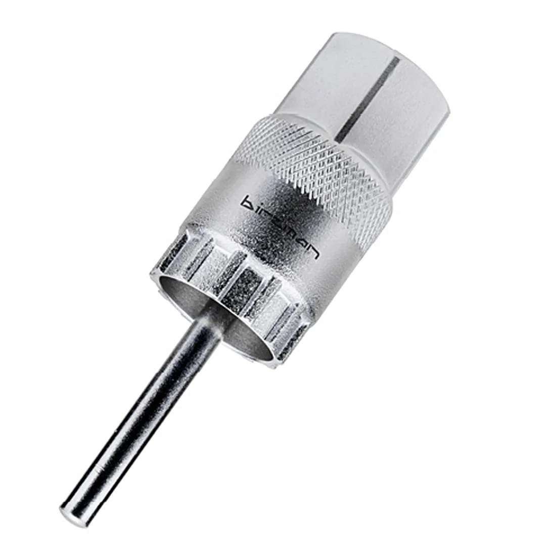 This cassette tool by Birzman is designed for the installation/removal of Shimano/SRAM cassettes and Center Lock brake discs. A centre pin securely holds the cassette tool in position, which makes it also suitable for use in a vice.