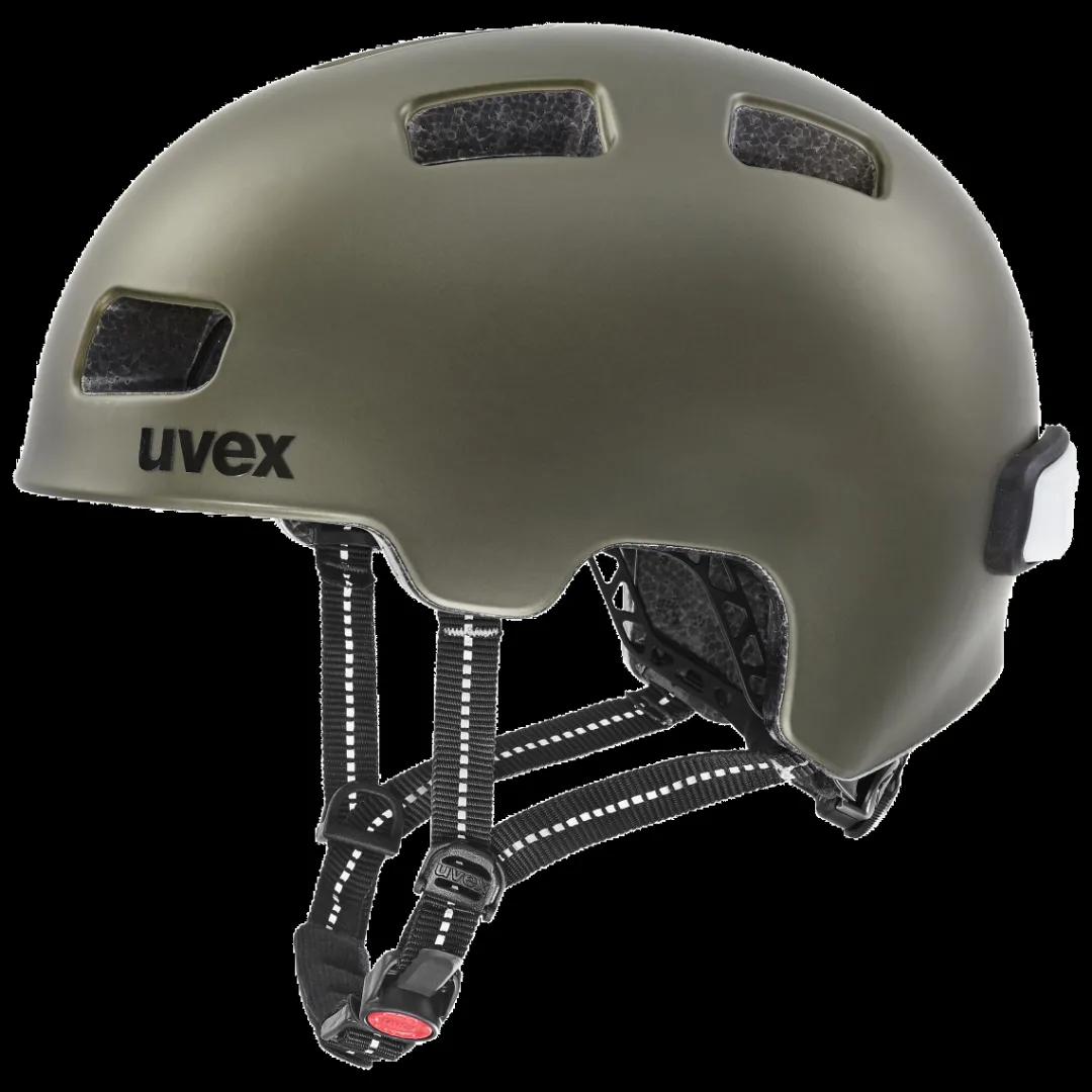 The CITY 4 from uvex is a stylish, urban bike helmet that impresses with its lightweight and robust INMOULD construction. Thanks to the 3D IAS system, you can optimally adjust the height and width of the city helmet to the shape of your head. The helmet also has a deep-drawn neck area for improved impact protection at the back of the head as well as an integrated Plug-In LED light. With its clean look, the urban helmet goes perfectly with any outfit.