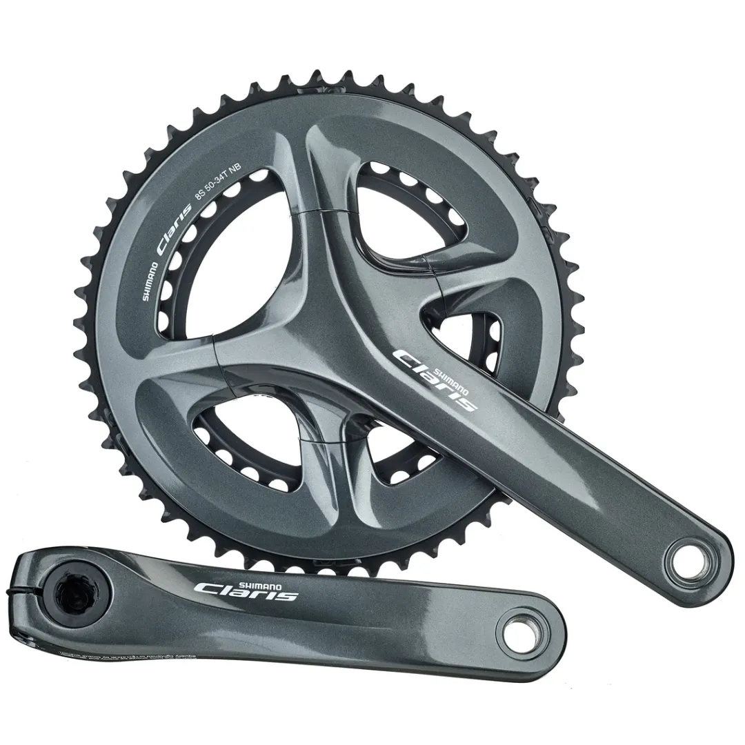 The Shimano Claris FC-R2000 crankset comes with a clean and stylish look. The 4-arm design increases stiffness and, moreover, makes sure that the power you put into it is directly transformed into acceleration.