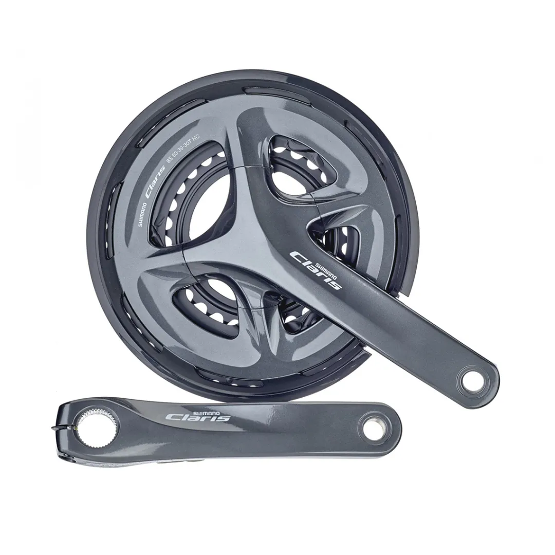 The Shimano Claris FC-R2030 crankset comes with a clean and stylish look. The 4-arm design increases stiffness. The wide range of gears of this triple crankset makes sure that you can manage steep climbs as well.