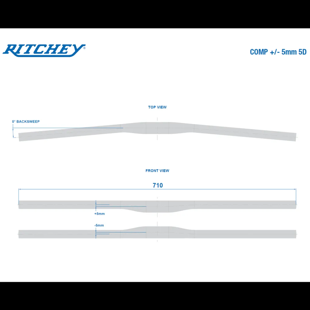 The Ritchey Comp Flat +/-5 handlebar is made of double-butted 6061 aluminium and offers two handlebars in one. With a constant back sweep of 5° (for a width of 710mm) or 9° (for a width of 720mm), it can be ridden with either a rise or drop of 5 mm by rotating it 180°. With the Ritchey Comp Flat Bar you can achieve different seat and grip positions.