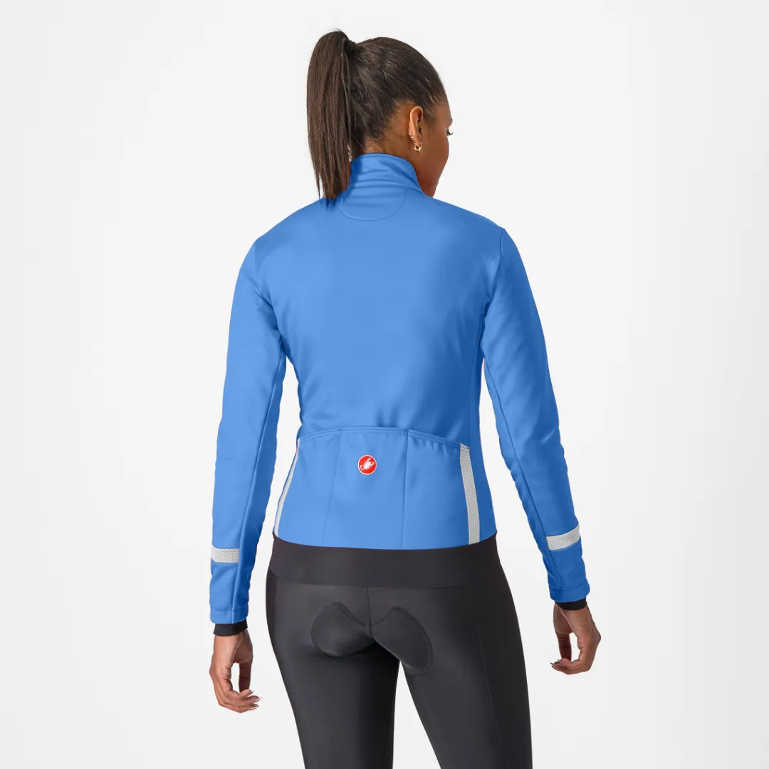 The DINAMICA 2 JACKET GORE TEX INFINIUM women’s softshell cycling jacket by Castelli ensures that you can enjoy your tours even in really cool conditions. With GORE-TEX INFINIUM WINDSTOPPER fabric, it actively keeps you from getting a chill. In the three back pockets you will find enough space for bars and gels so that you don’t run out of food even on long tours.