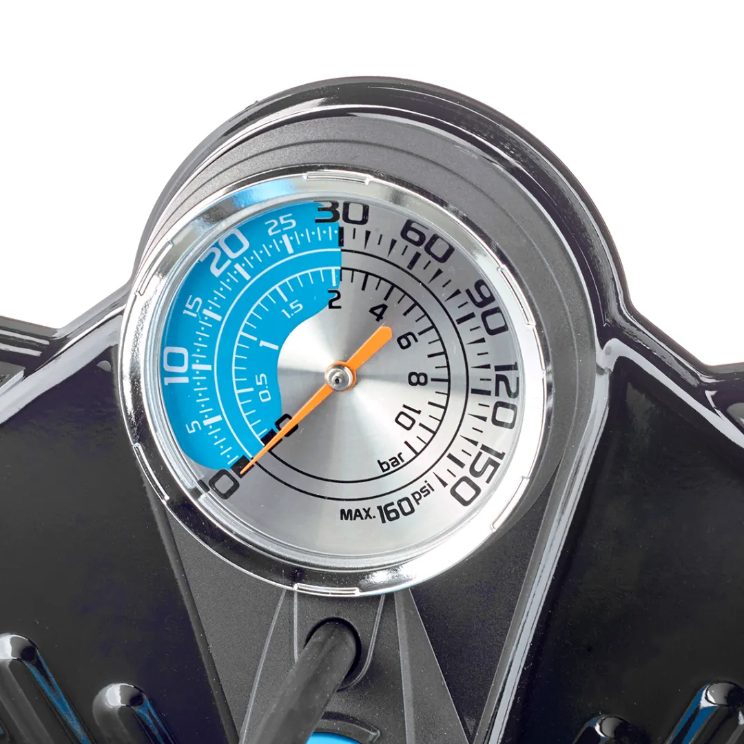 Featuring a large 3” dual-zone gauge, you can always see the tyre pressure. If you have gone too far, you can comfortably let out some air through the pressure release valve.