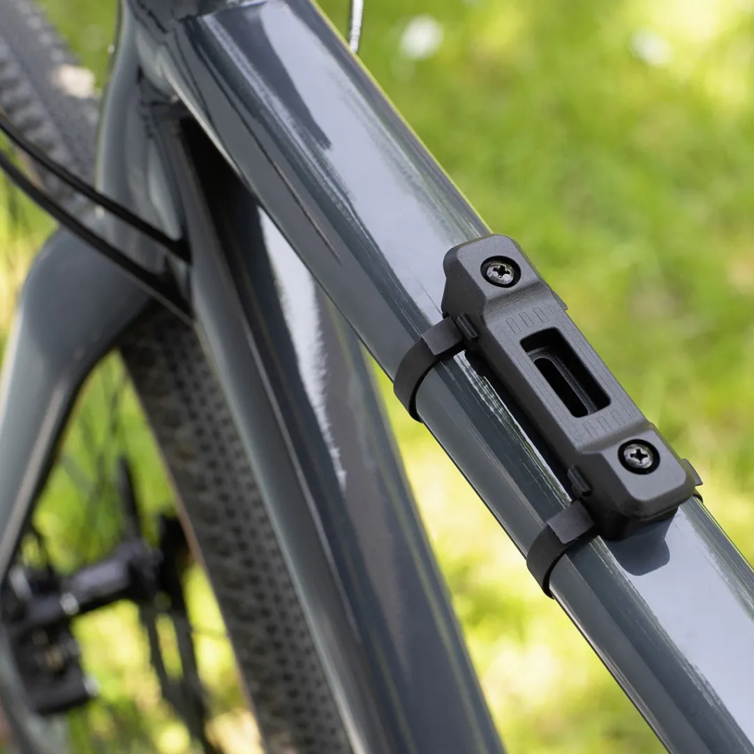 This versatile mounting system is characterised by a flat and slim bracket that remains discreetly on the bike, as well as easy handling with just one click. The bracket provides a firm hold for compact bags on the frame and fork. The compatible bags are simply clicked into place and are released with a pull on the integrated webbing.