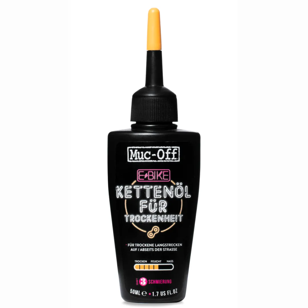 The powerful drives of modern e-bikes and pedelecs demand a lot from the chain. The Muc-Off E-Bike Dry Lube chain oil was specially developed for e-bike chains, to counteract the high torque loads.