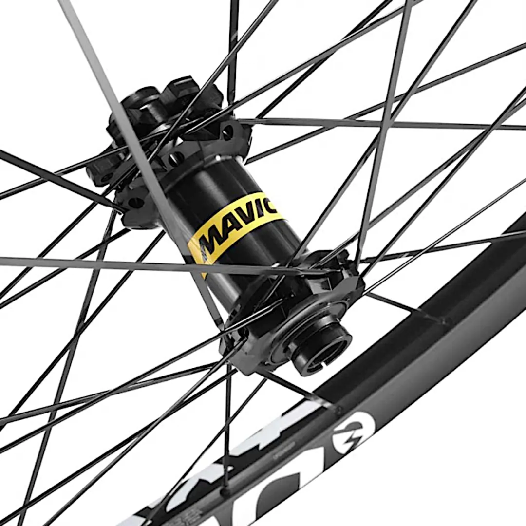 The E-Deemax 29 has adopted innovative technologies from Mavic’s S-Class, such as Pinch Flat Protection (PFP), where the support surface of the rim flanges is so large that the risk of sidecuts during punctures is significantly reduced. The Maxtal aluminium rims are welded for greater stability and have an asymmetrical triangular profile. This helps to absorb hard shocks and impacts – from merciless rock passages to hard landings and tough compressions. Thanks to the 30 mm jaw width and tubeless-ready compatibility, the E-Deemax 29 can also be ridden with lower tyre pressure to increase traction and control.
