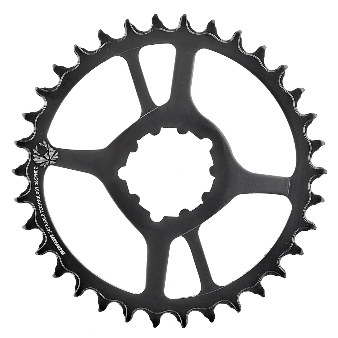 The SRAM Eagle™ Direct Mount steel chainrings with the proven X-SYNC 2™ technology are designed for maximum chain control, smooth running and excellent durability and optimized for use with SRAM Eagle™ chains. The chainring directly attaches to the crank arm with 3 bolts, which results in improved power transfer and a reduced weight. Besides, this kind of attachment creates a much cleaner and more attractive appearance.