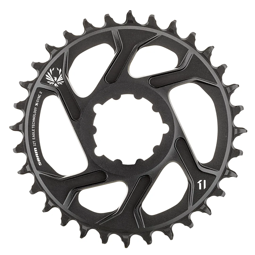 The SRAM Eagle™ Direct Mount chainrings with the proven X-SYNC 2™ technology are designed for maximum chain control, smooth running and excellent durability and optimized for use with SRAM Eagle™ chains. The chainring directly attaches to the crank arm with 3 bolts, which results in improved power transfer and a reduced weight. Besides, this kind of attachment creates a much cleaner and more attractive appearance.