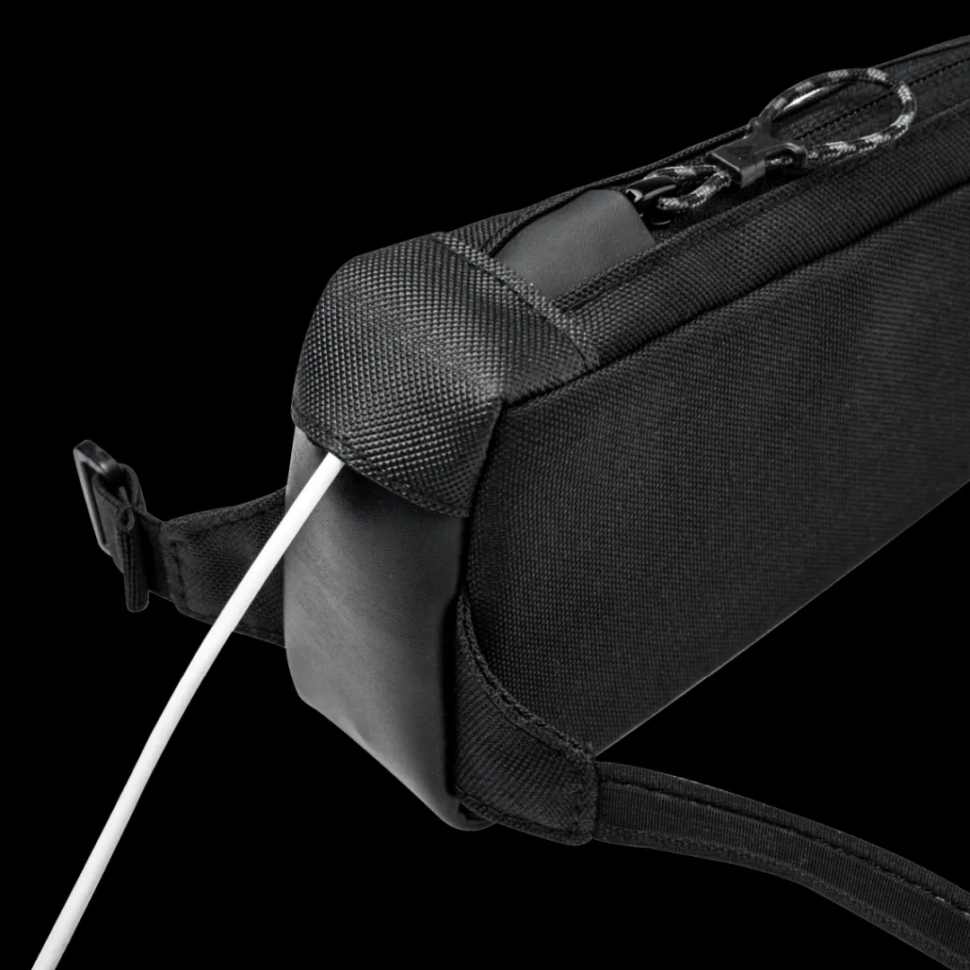 Nice feature: A cable opening allows you to charge your smartphone or bike computer while riding, for example via an external battery in the frame bag.