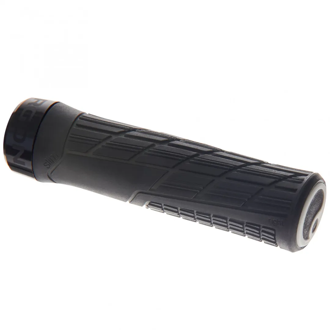 Benefit from the experiences of huge numbers of Enduro World Series pilots! With the help of their feedback, the developers from Ergon managed to further improve the successful GE1 grip. The GE1 Evo Slim Factory grips provide more direct steering than the standard GE1 Evo Factory grips (prod. code: 2268093) thanks to a lower grip circumference. Yet, both models come with a surface profile that offers more grip than their predecessors and with an improved Factory Custom rubber compound. Compared to the Gravity Control rubber compound of the standard GE1 Evo, this compound stands out for improved grip when wet and further improved cushioning. By turning the handlebar axis by 8%, the elbows are automatically lifted outwards. Thus, the GE1 Evo Slim Factory actively supports the correct lower arm and upper body position during downhill riding. Thanks to a fully integrated grip end that is connected to the inner core, you can even grab the bar at the outer ends, as the grip edge is also soft. This provides relief for the pressure-sensitive ulnar nerve lying at the outer hand. With the improved GE1 Evo Slim Factory, Ergon offers an excellent, rider-oriented grip for wide riser bars.