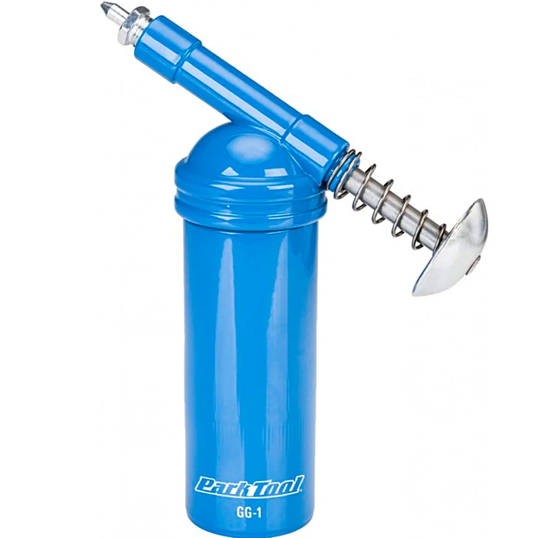 The practical grease gun by Park Tool allows for precise lubricating of bearings, threads, inner cables etc. or for precise placement of anti-seize and assembly paste. The GG-1 can be used as a self-contained grease gun by utilizing the included canister and filling it with grease or lube. However, it can also be screwed on to any tube of Park Tool grease. After removing the doser, the tube can be screwed directly into the pump head so that the product does not have to be filled into the canister first. The practical doser fits comfortably into the palm of your hand and can be operated easily with thumb or palm. In this way, the Park Tool grease gun with its small tip opening ensures precise placing of lube into any application.