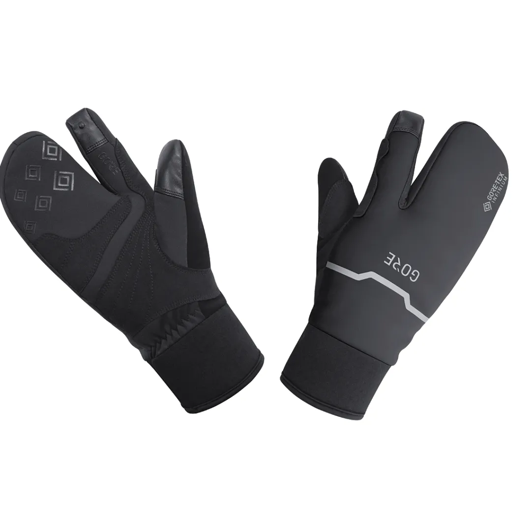 With the GORE-TEX INFINIUM THERMO SPLIT gloves by GOREWEAR, you can easily brake with individual fingers. While the thumb and index finger can be placed around the lever, the other fingers are warmly encased in a fist design with PRIMALOFT lining, so that it feels like they are in normal gloves. Made for cyclists looking for warmth, protection, and control.