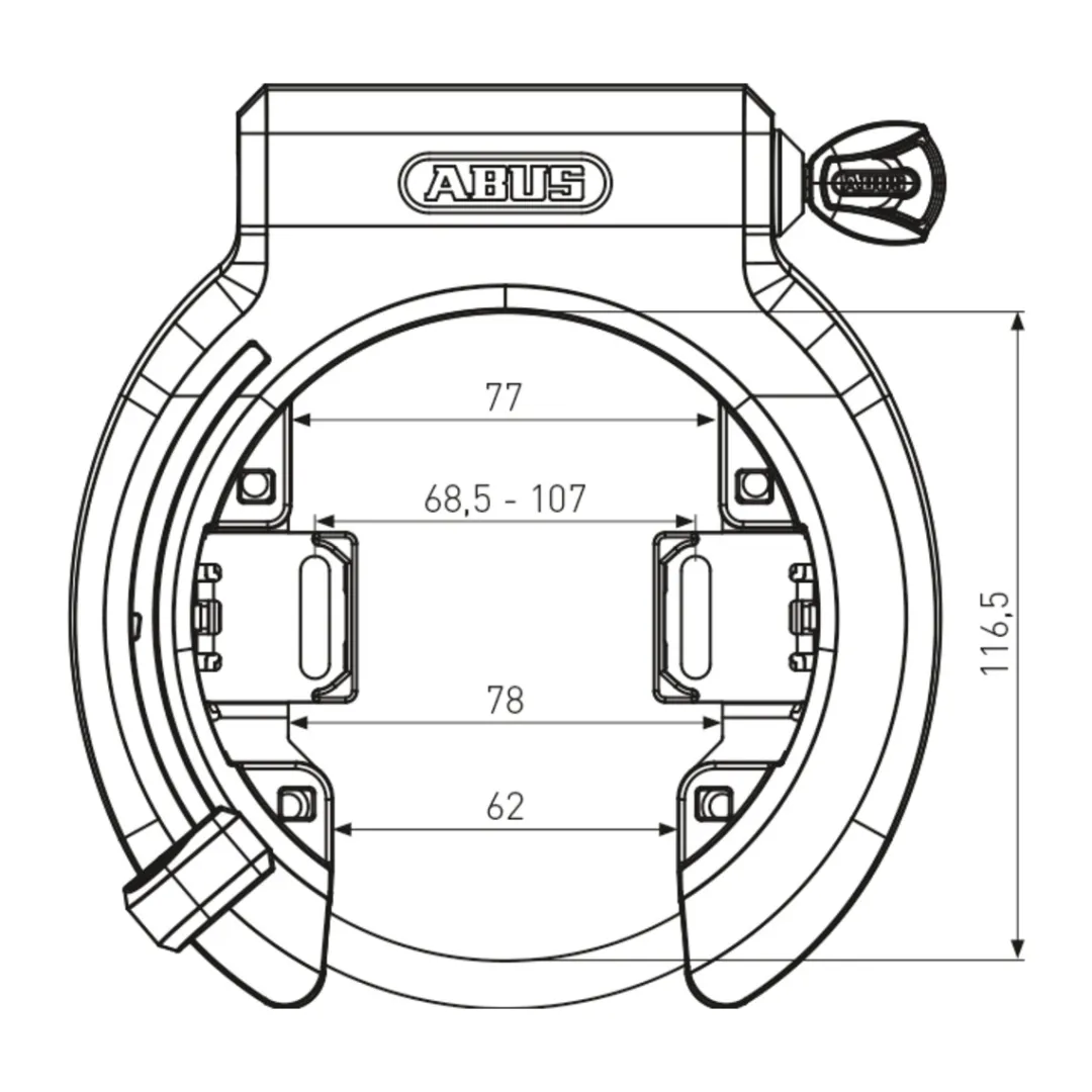 Being permanently mounted on the bike frame, the ABUS frame lock accompanies you on your tours as a quick and easy-to-activate security device. Thanks to the adjustable bolt spacing of the mounting plates, the 6950M can be fitted to all standard bike frames. In case your bike does not have any suitable mounting points: With the separately available LH adapter strap, you can easily mount the frame lock even without suitable holes.